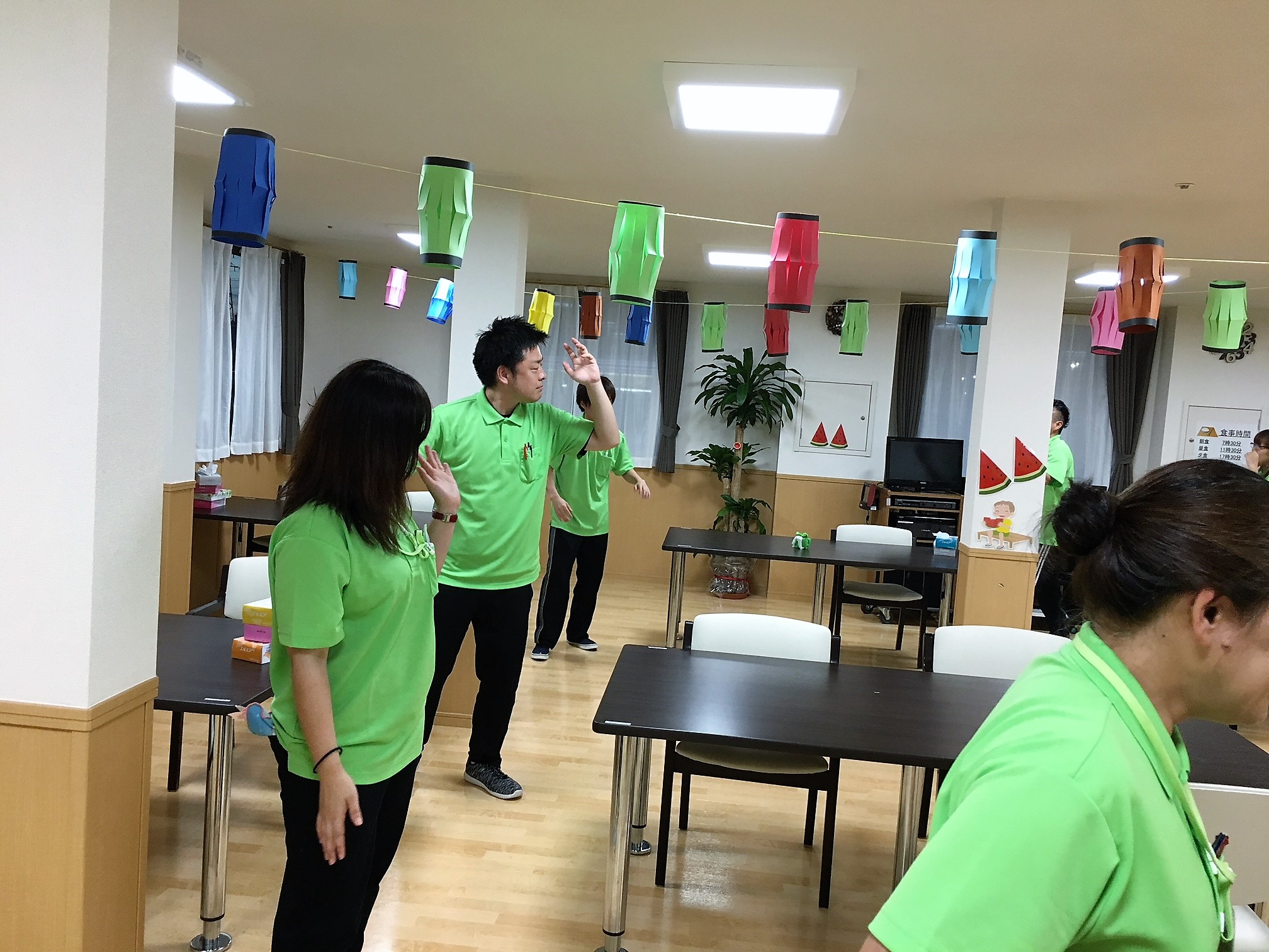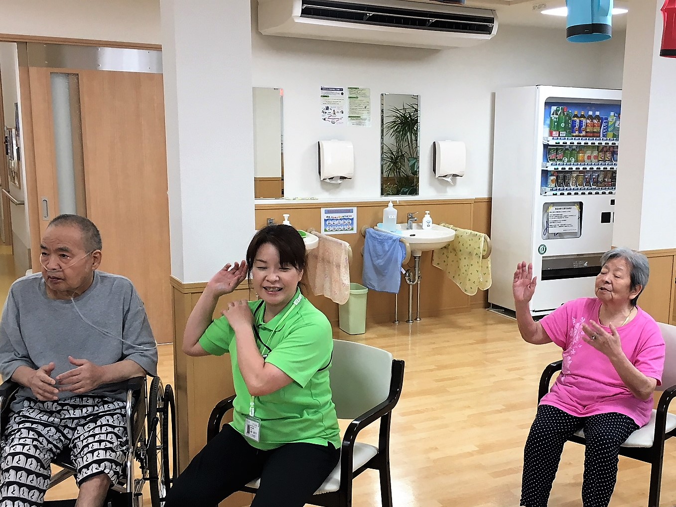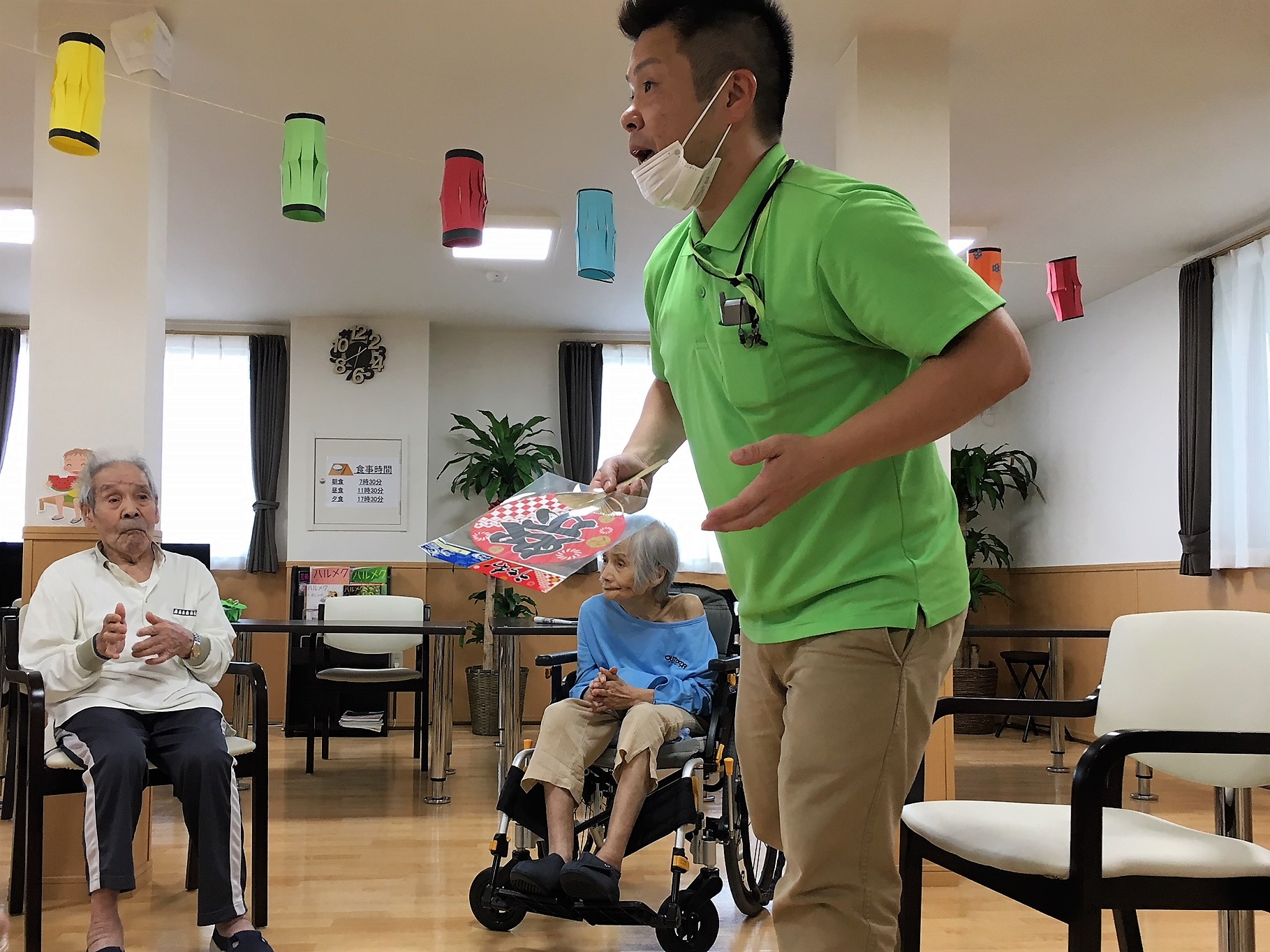 利用者様を交えての盆踊り練習♪