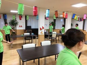 仕事終わりに職員でこっそり盆踊りの練習♪