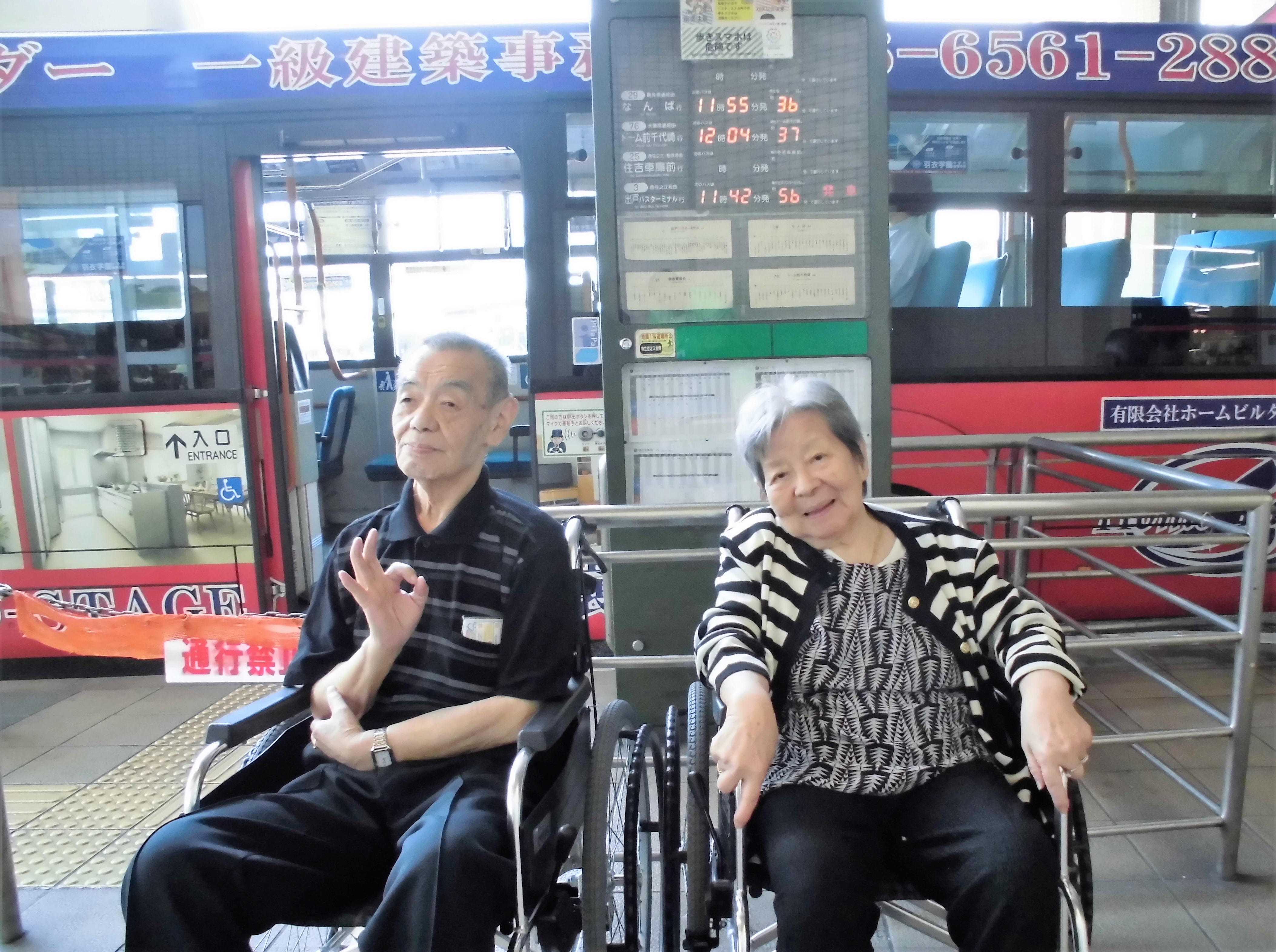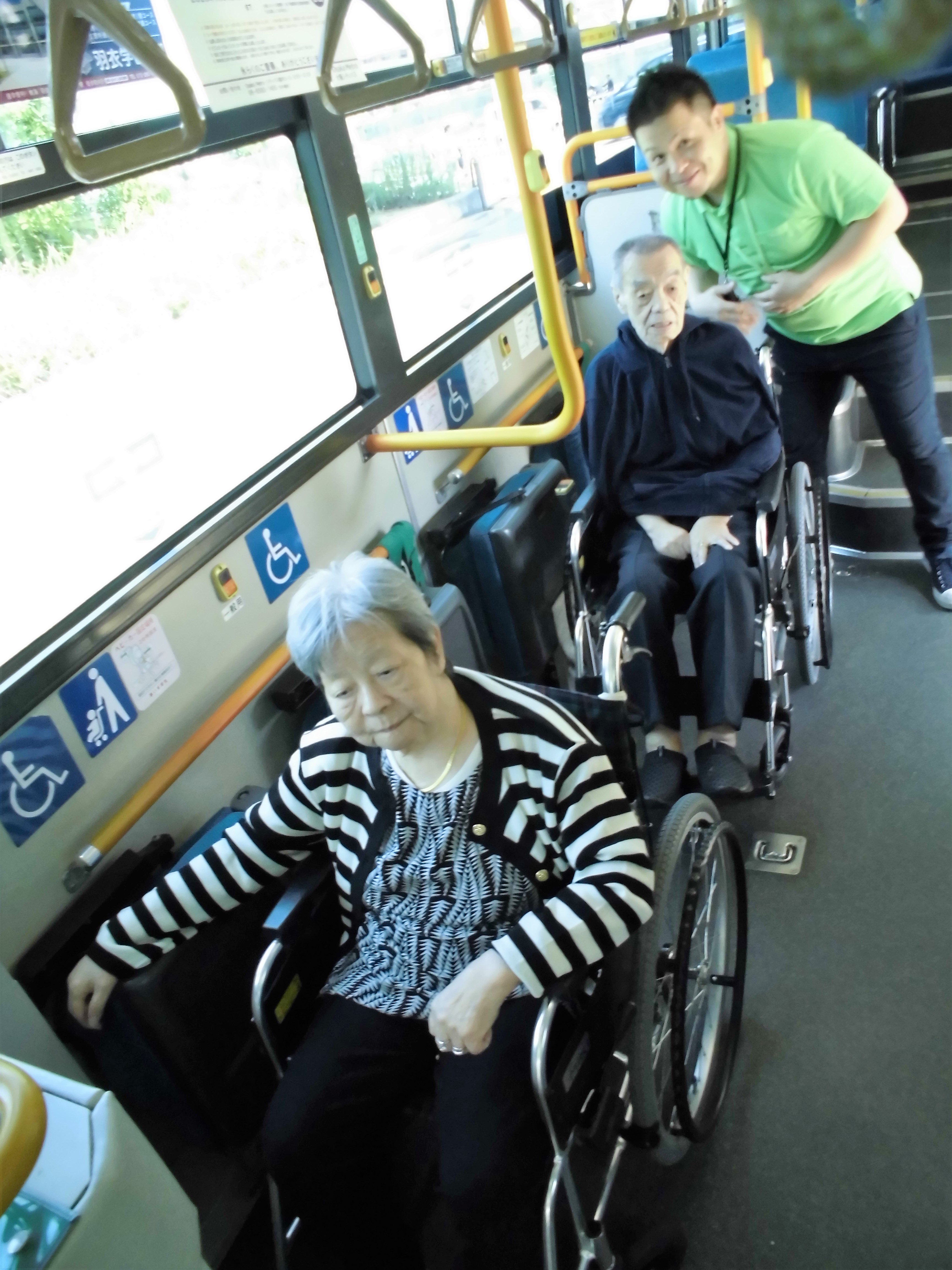 バスは全車両ノンステップで車いすに対応していて広々!