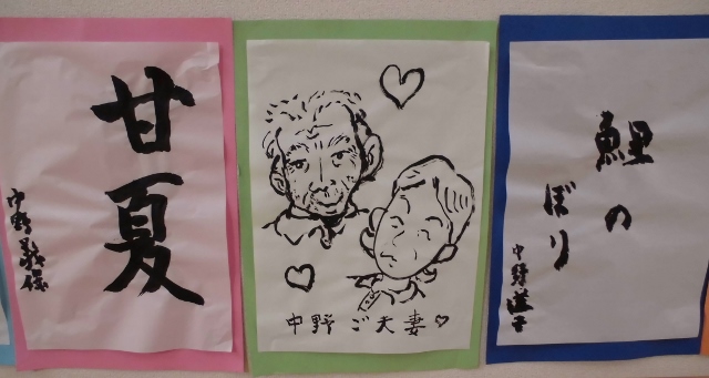 真ん中の墨で書いた似顔絵 上手でしょ!(^^)!