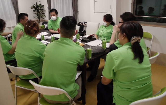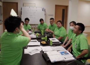 月に1回、業務終了後に職員が集まり会議&勉強会を行っています。