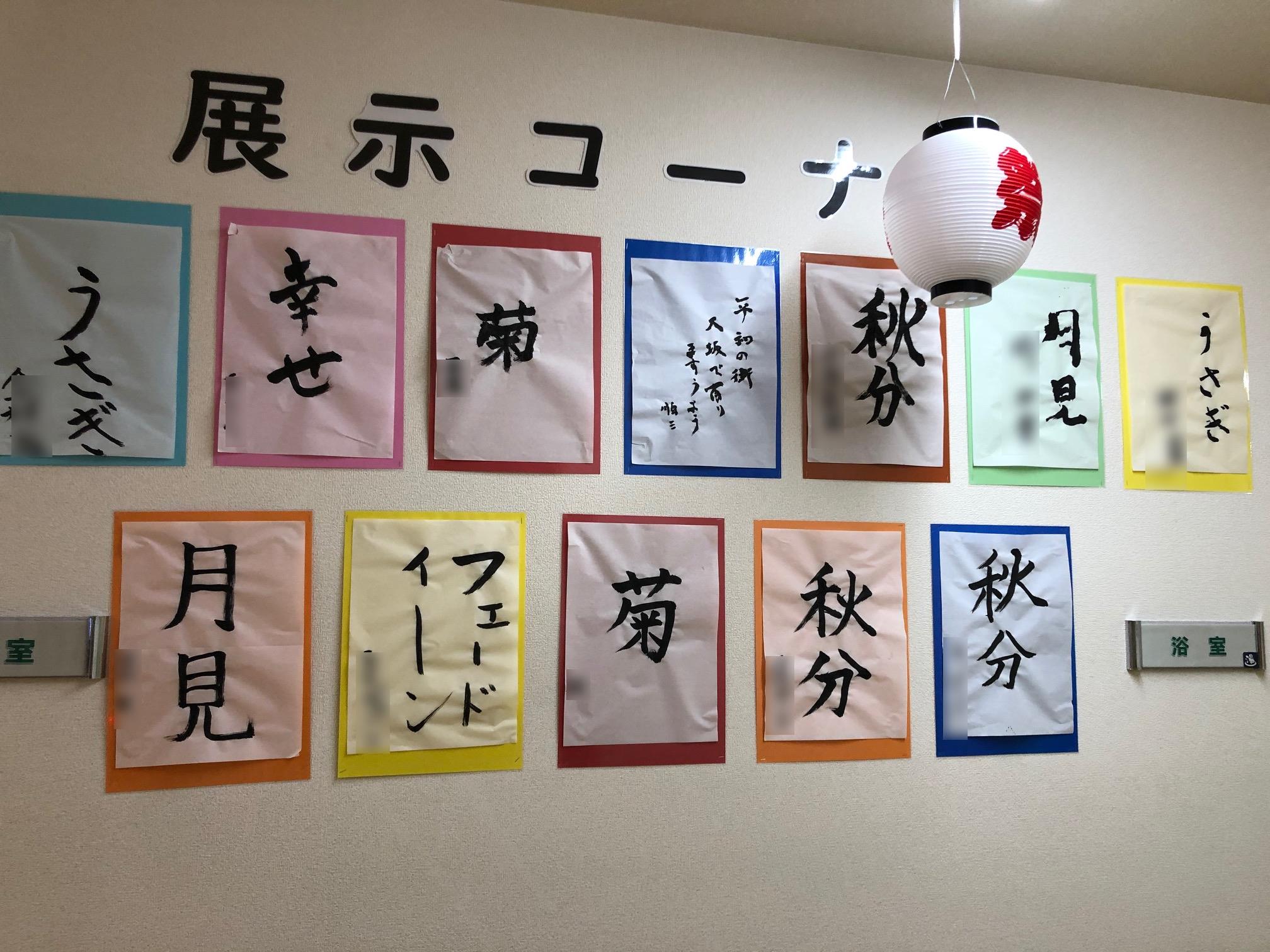 昨日行われた、書道レクの作品を掲示しております(●ˇ∀ˇ●)
