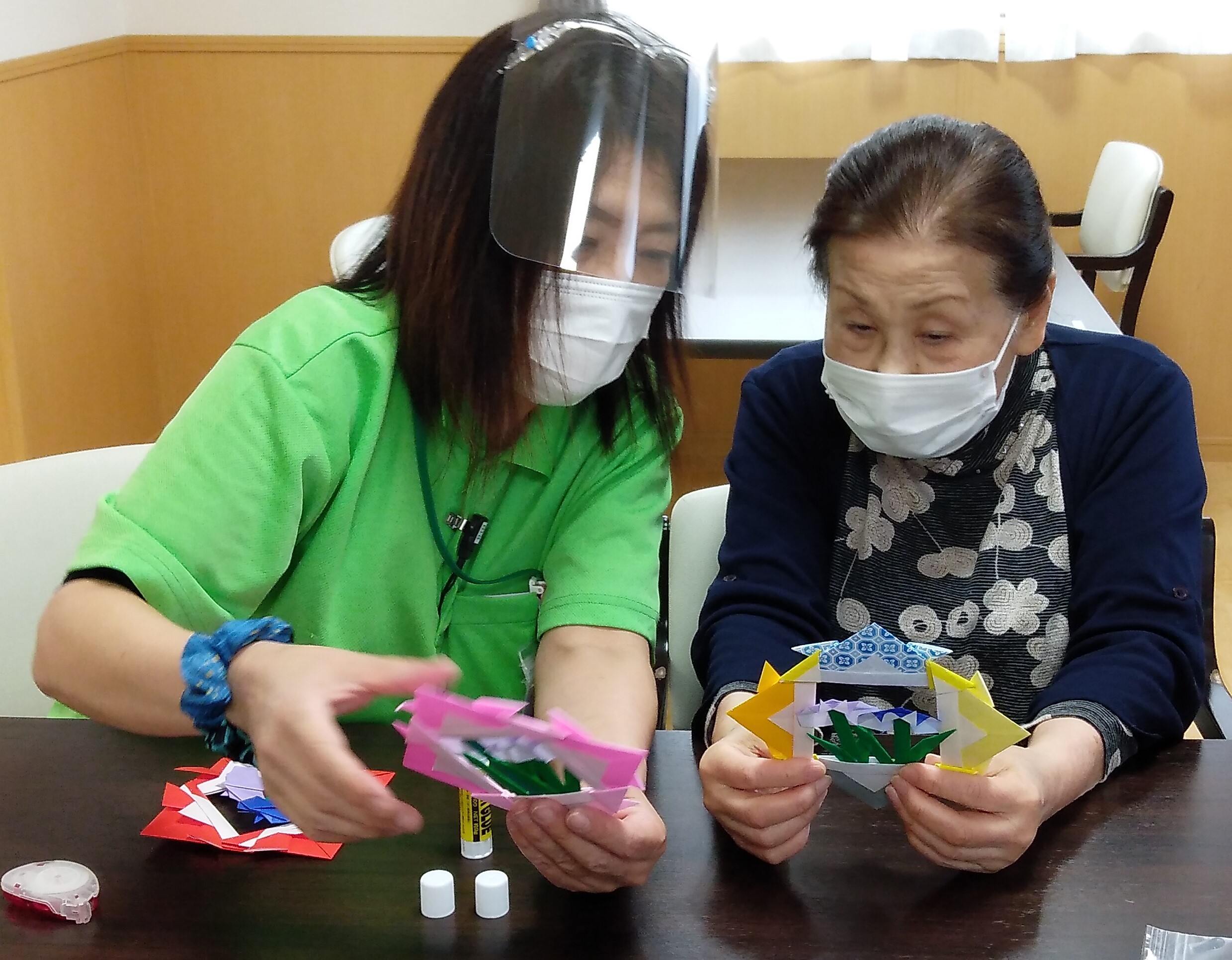 五月の制作レクで あやめとかぶとのリース を作成して頂きました(❤´◡`❤)