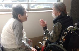 お部屋の中ばかりで過ごすより、気分転換にと車いすで廊下に出られた際
