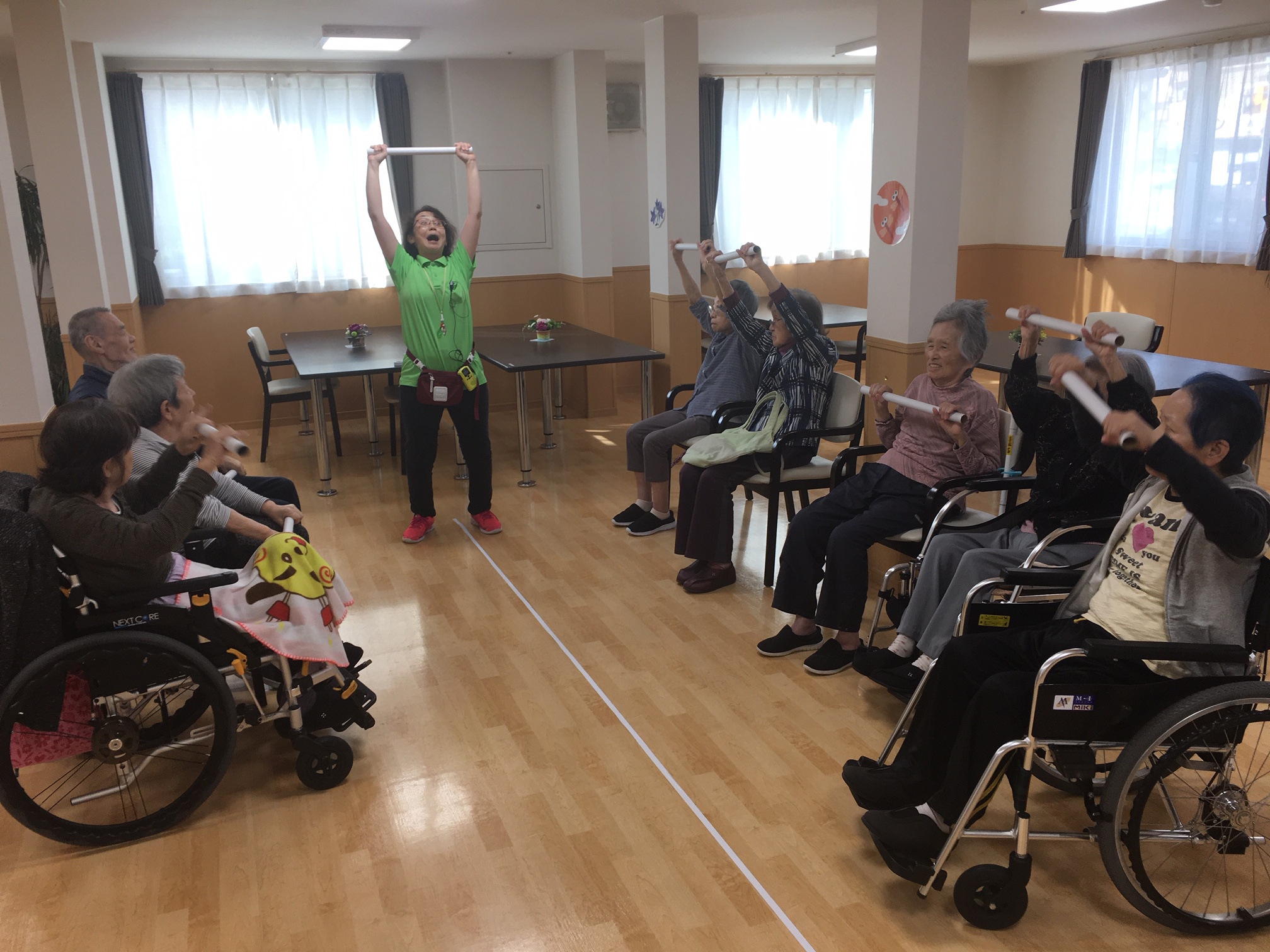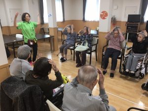 まずは棒を使った体操からです。体がポカポカしてきます
