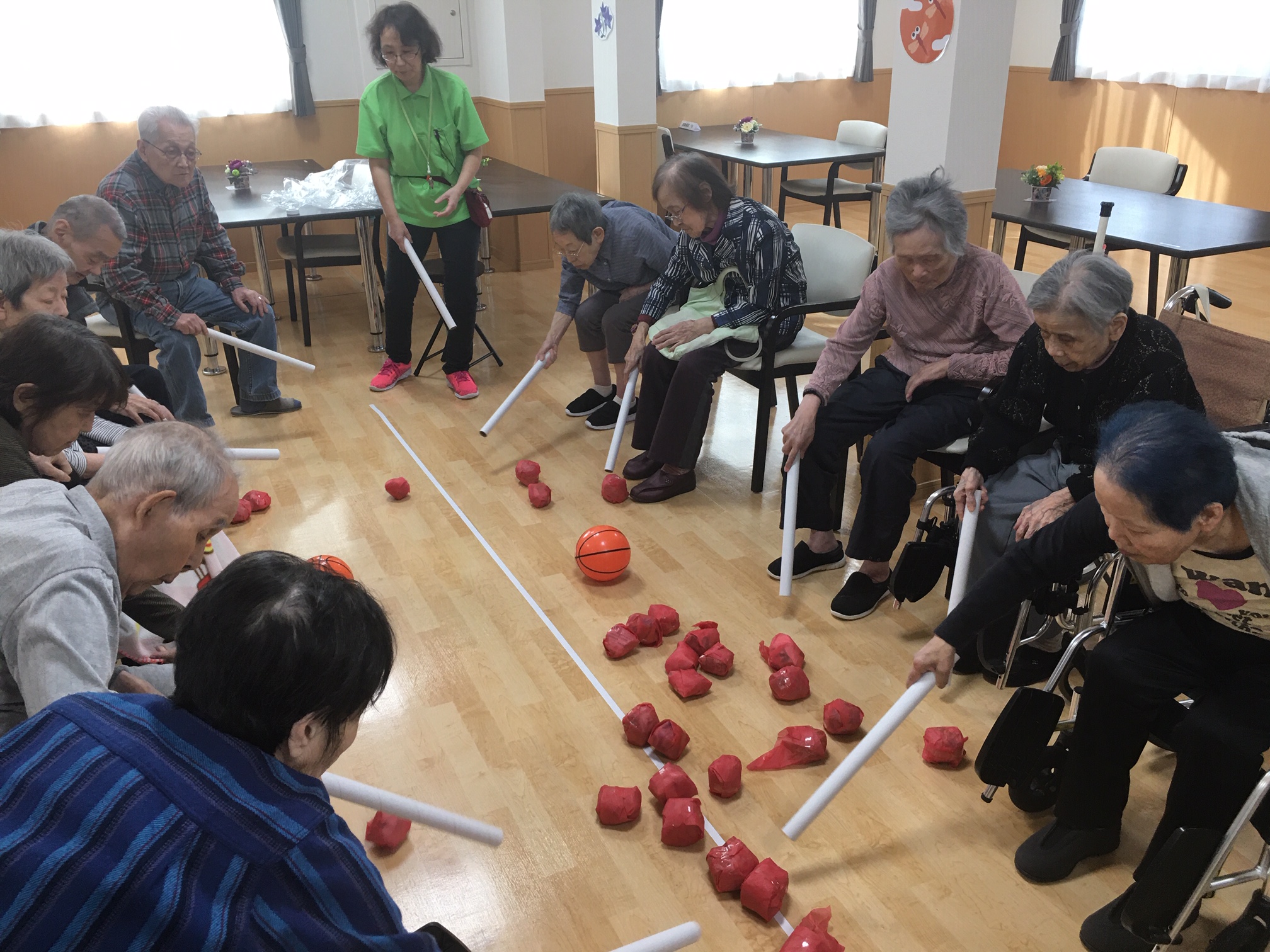 後半は棒を使って玉ころがしです。皆さん楽しんで下さいました 😛