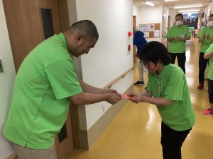 いつも明るく、入居者様に接してくれているTケアワーカー。