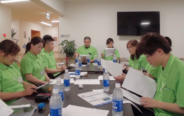 全職員が集まり会議を行っています。