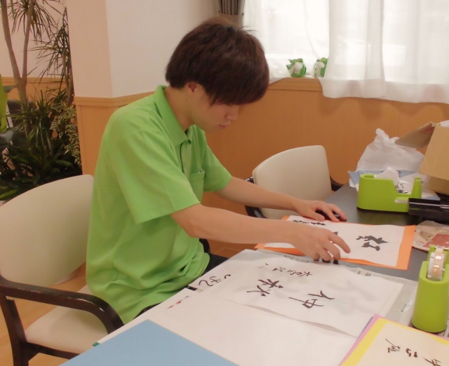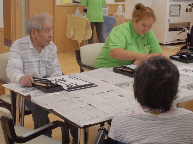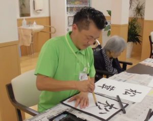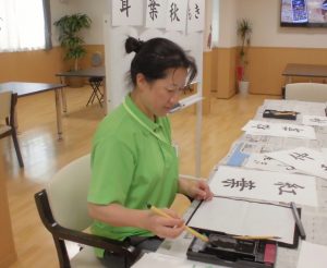 職員も書道クラブに参加し、筆を持ち一筆!!
