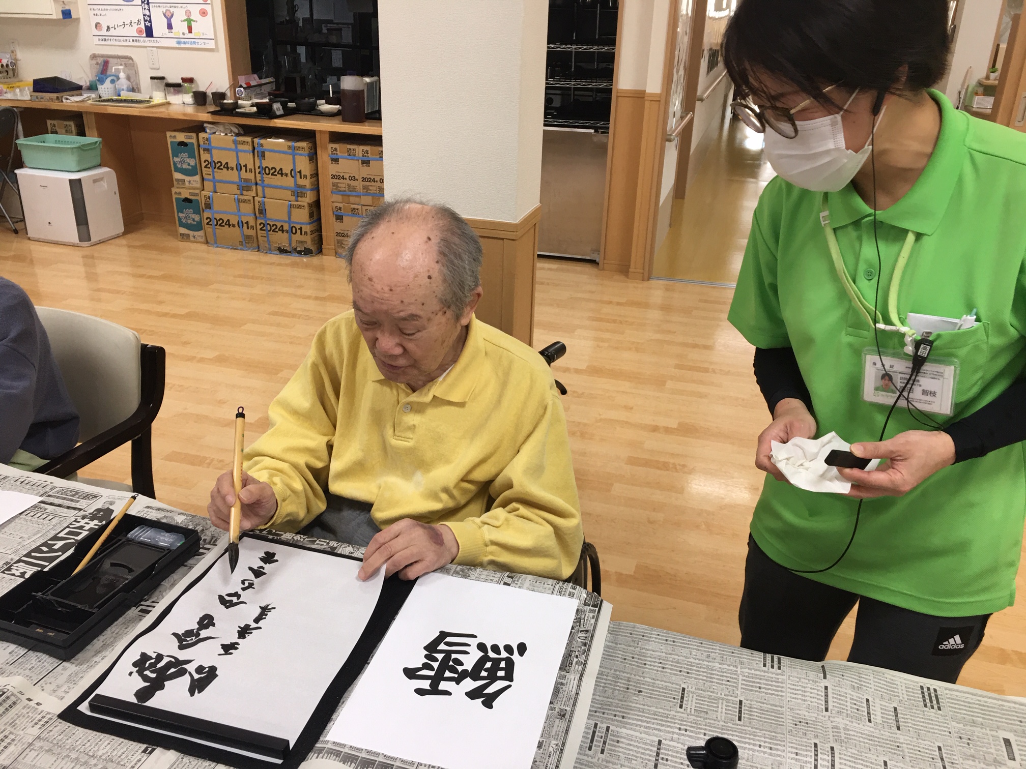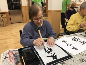 毎月開催の書道レクの様子です
