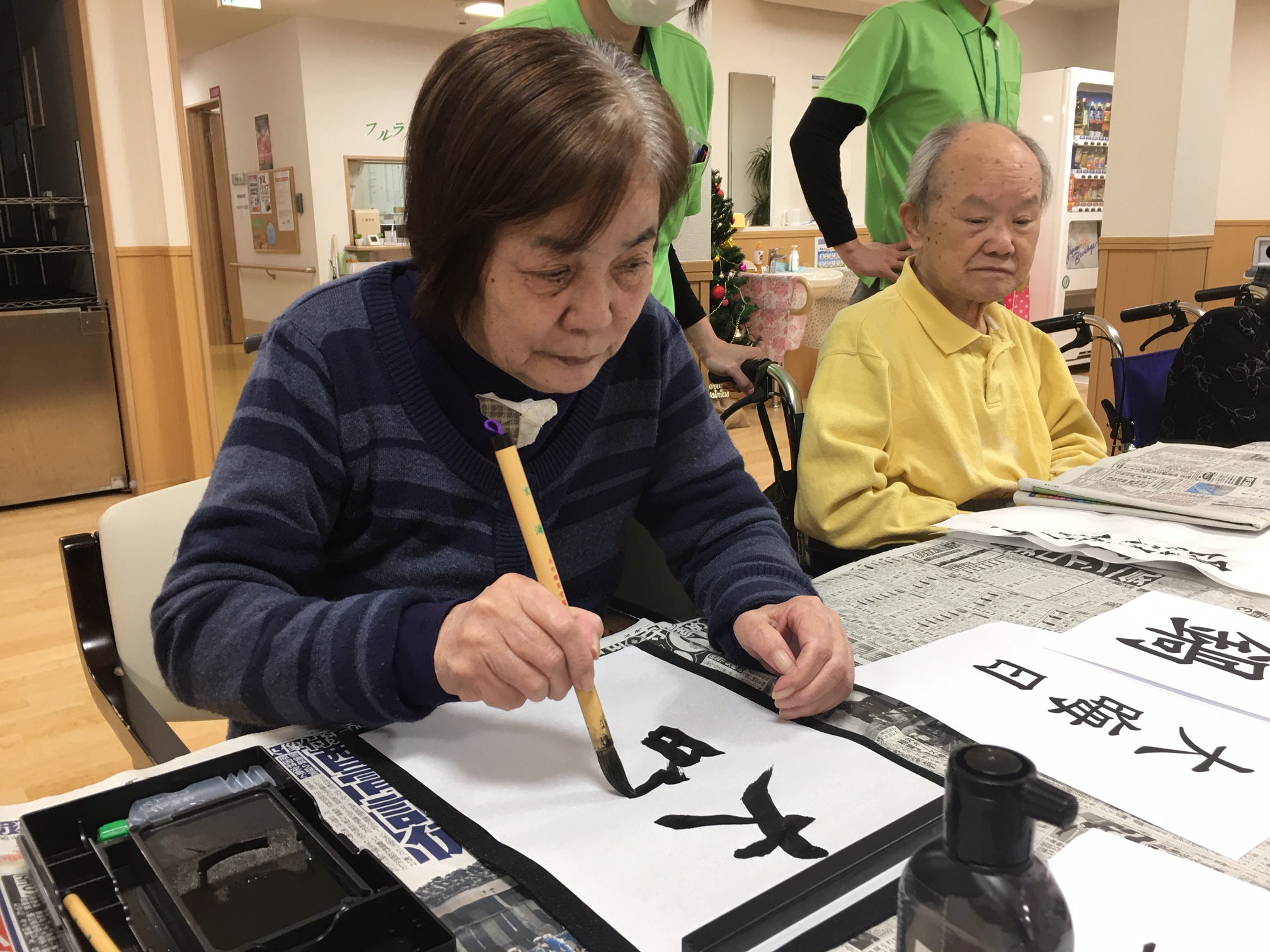 達筆なH様、すっかり書道がお好きになられたK様です。