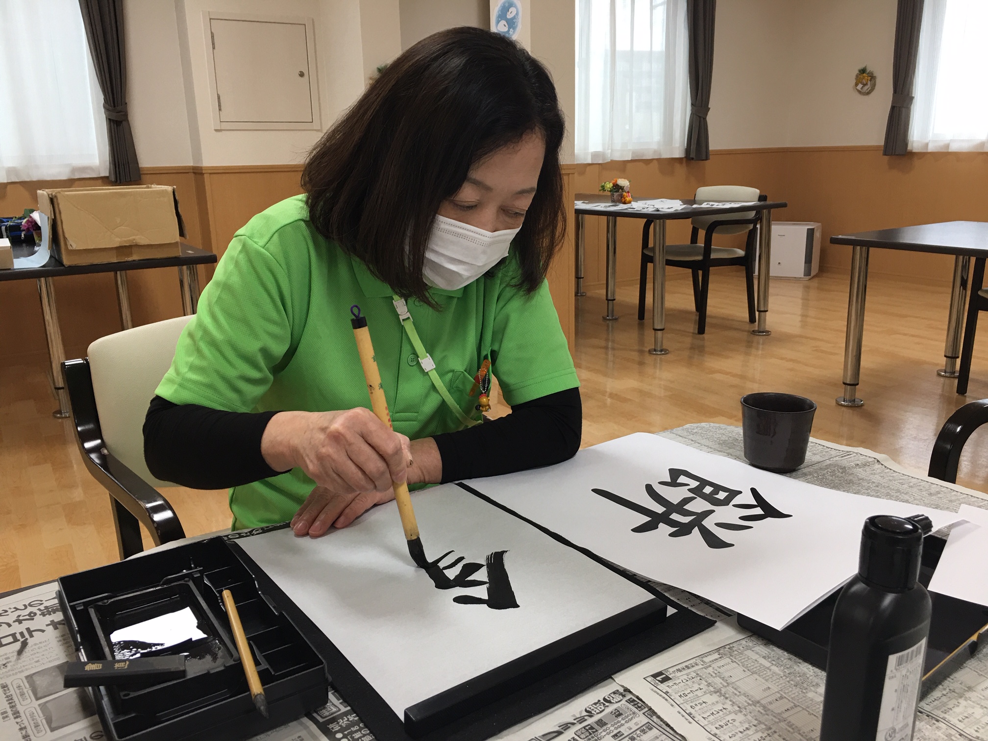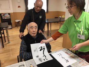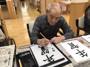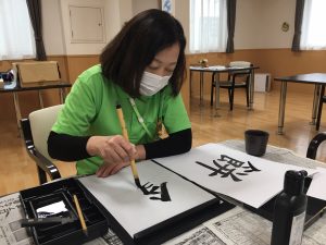 今日は書道レクを開催しました書初めですね