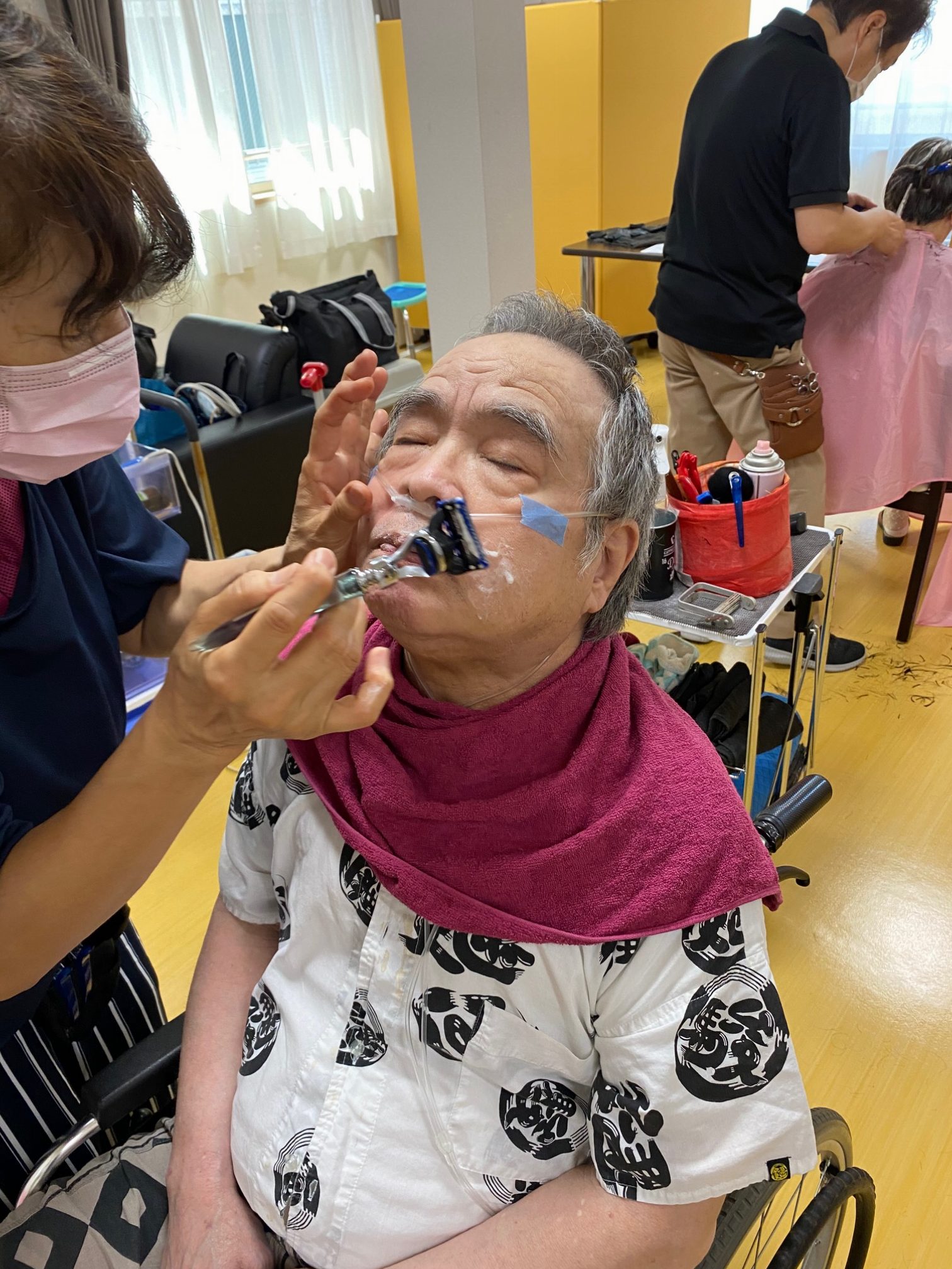S様は顔そりしてもらって気持ちよさそう 🙂