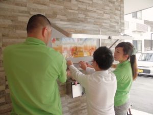 玄関入口横の掲示板も