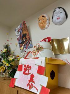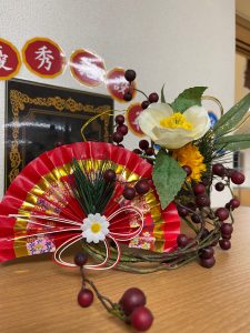 Fケアワーカーのフラワーアレンジもお正月バージョンで