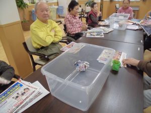 紙をクシャクシャに丸めてかごに入れ、先にかごいっぱいに