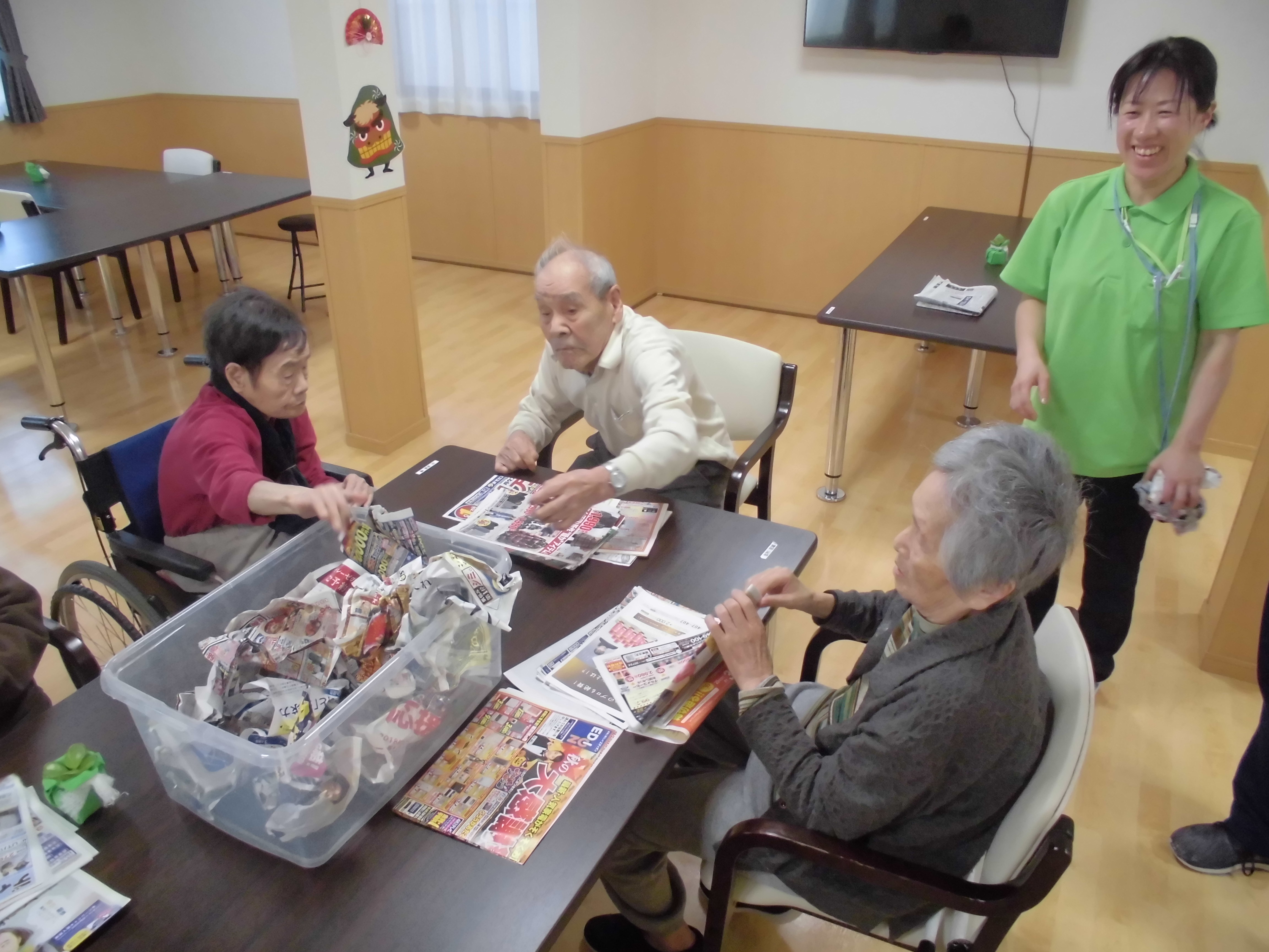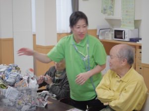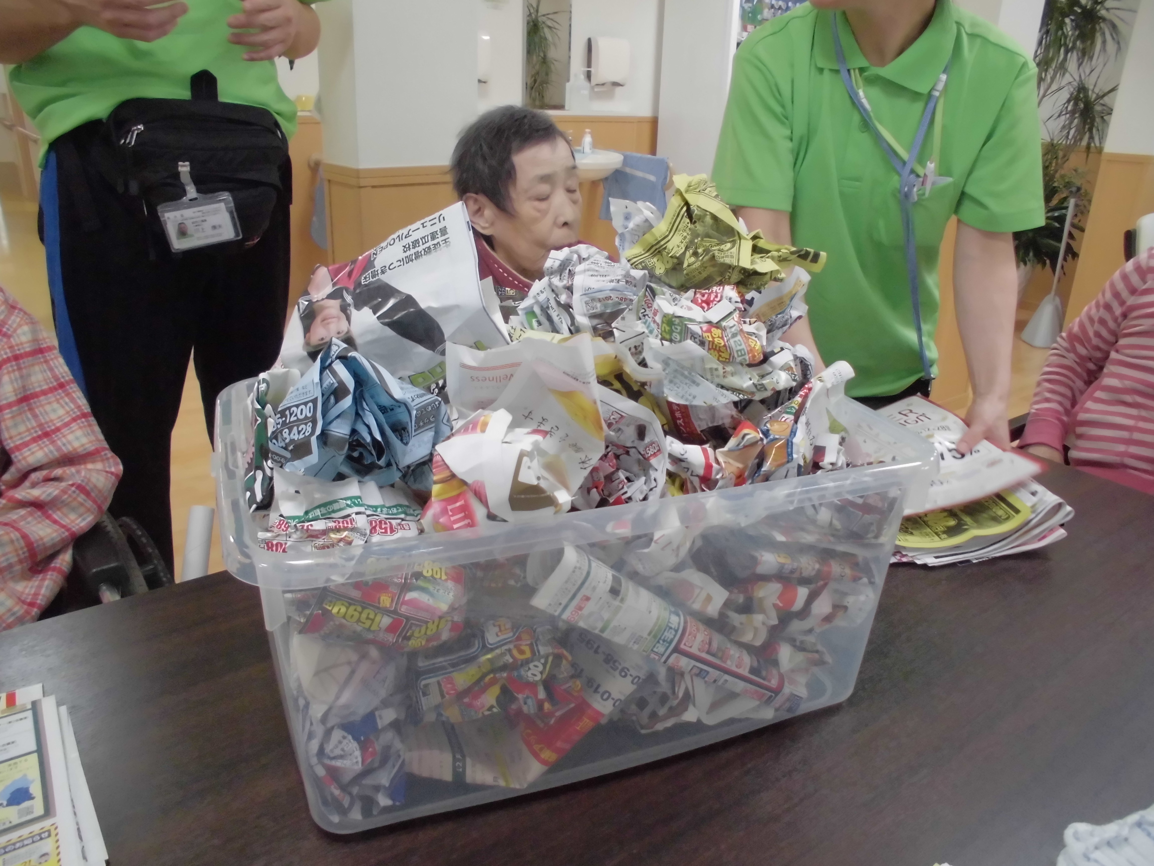 『紙をクシャクシャに丸めてかごに入れ、先にかごをいっぱいに