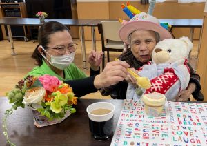 Fケアワーカーと一緒にプリンをご堪能いただいております❤