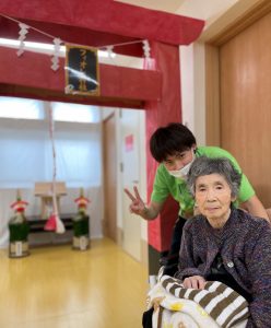 SケアワーカーとF様のツーショットです(●ˇ∀ˇ●)♪ ゆっくり時間をかけてお祈りされてました。。。
