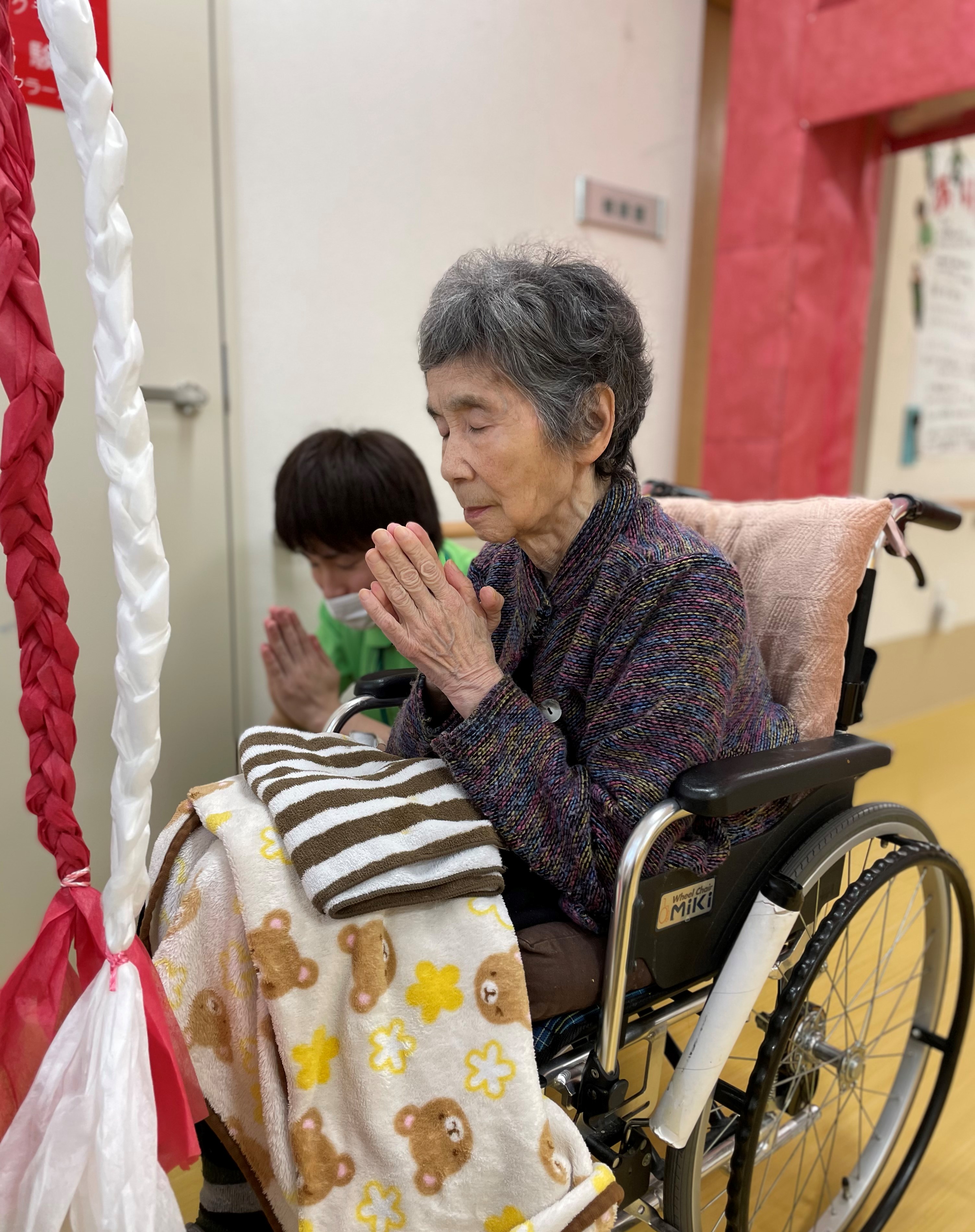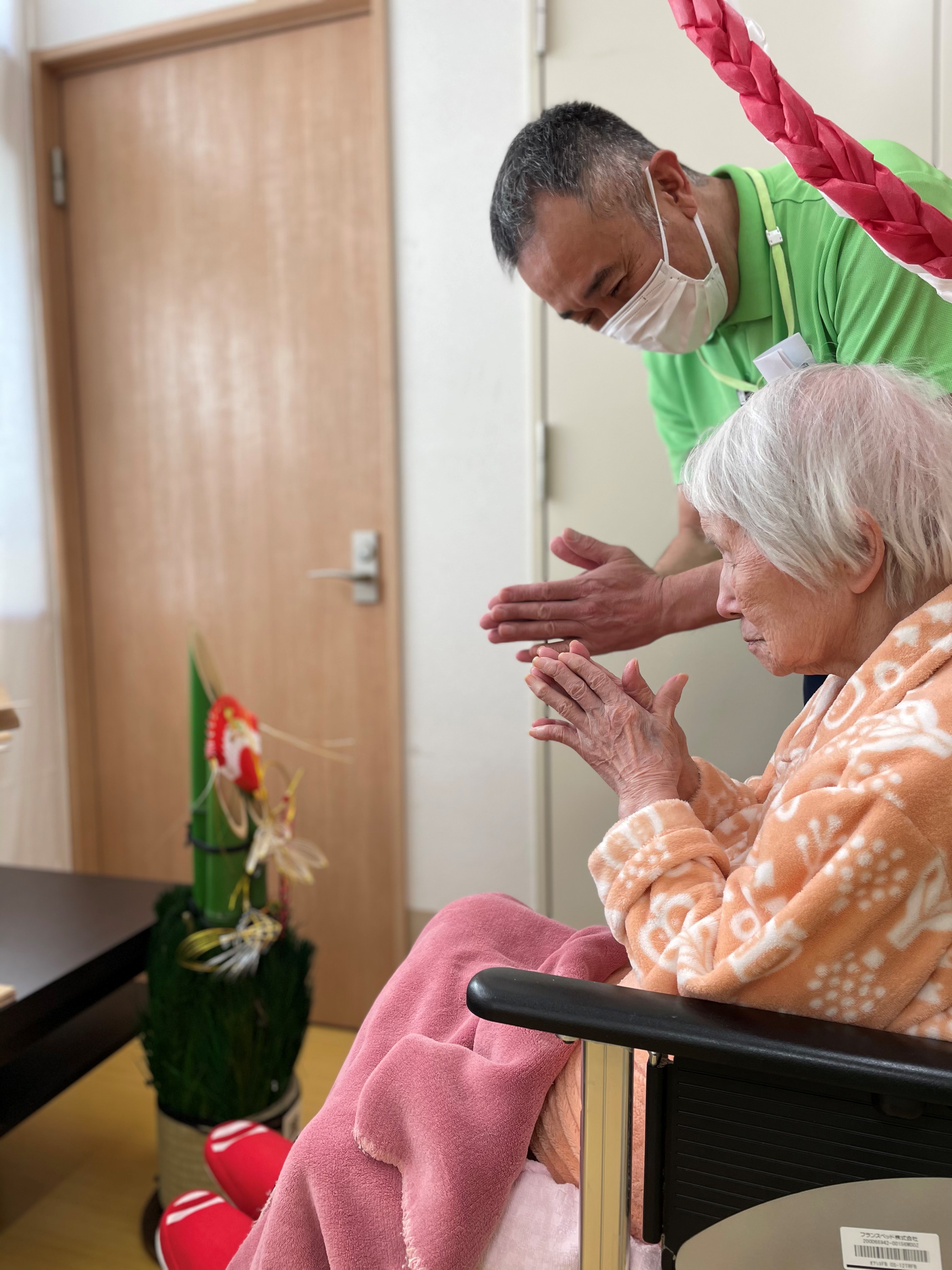 SケアワーカーとF様のツーショットです(●ˇ∀ˇ●)♪ ゆっくり時間をかけてお祈りされてました。。。