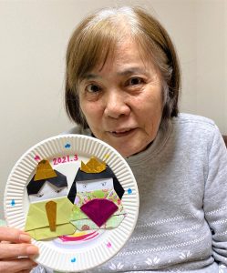 Tケアワーカーがお孫様と一緒に、ご自宅で制作レクで使用するパーツを