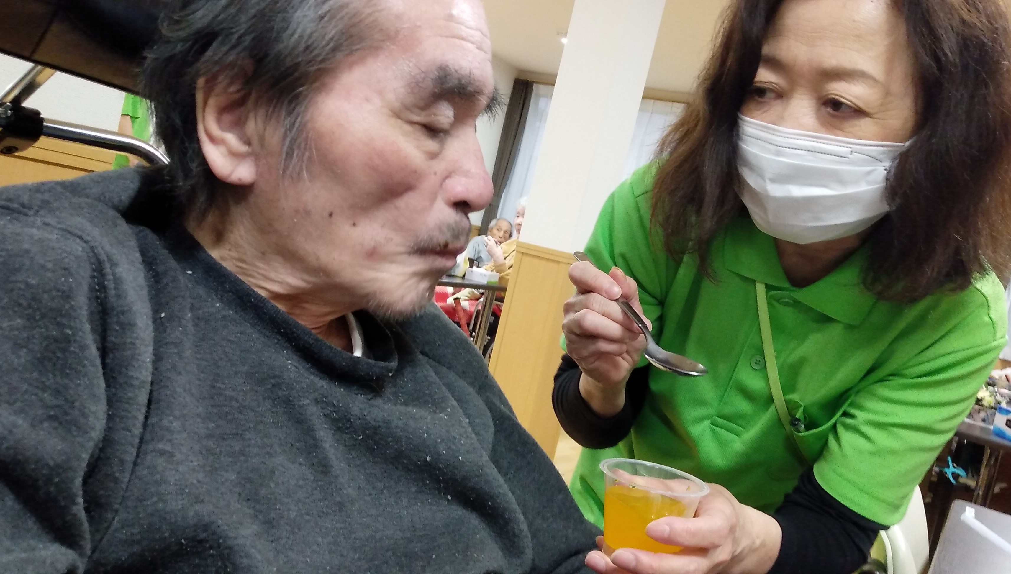 日頃はあまり食欲がないM様ですが、今日は娘様が持って来られている