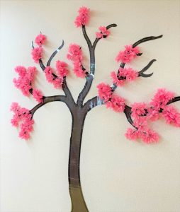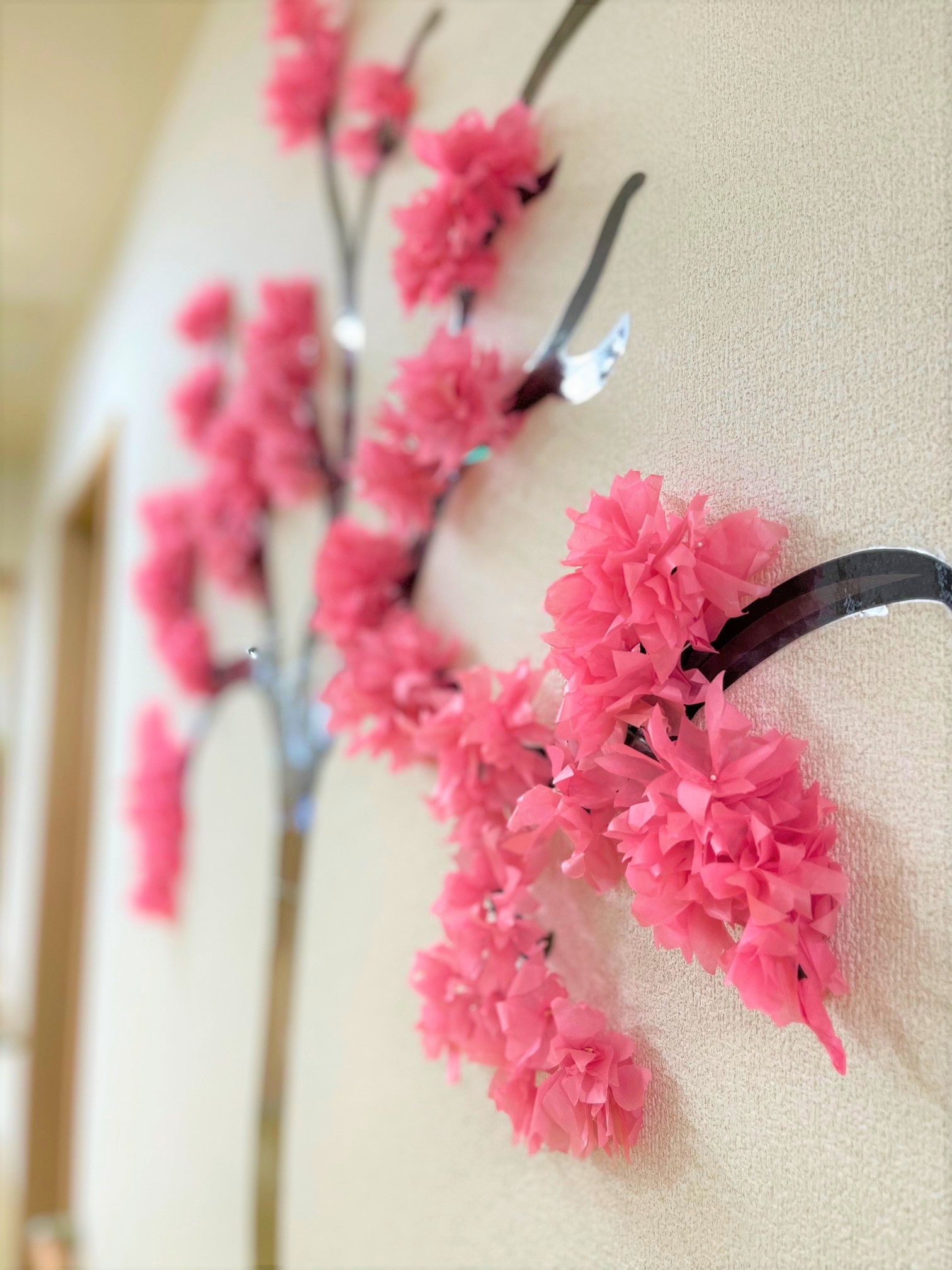 職員に桜を貼ってもらいキレイな作品に仕上がりました(´▽`ʃ♡ƪ)