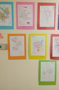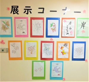 先日開催された塗り絵レクリエーションの作品が展示してあります😊‼