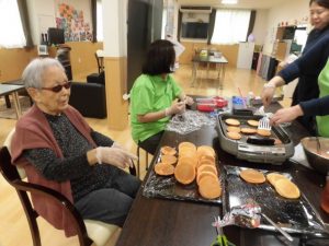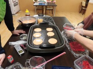 ひな祭りの写真撮影の後は、ホットケーキづくりをしました(^^♪)