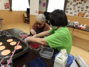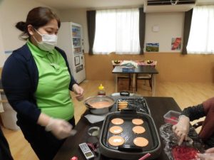 ひな祭りの写真撮影の後は、ホットケーキづくりをしました(^^♪)