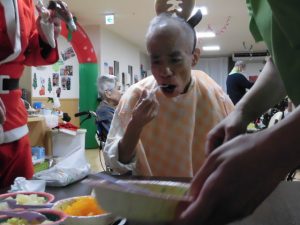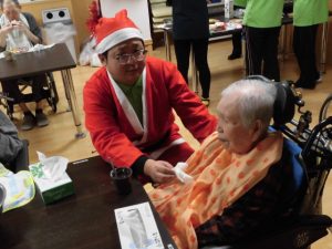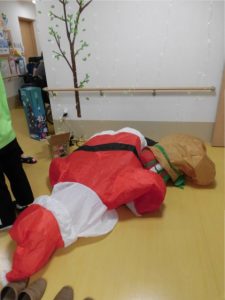 1ヶ月以上にわたって入居者様にかわいがってもらったデカデカサンタさんも、ついにお役御免の日が来ました・・・(T_T)