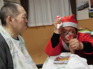 舞台裏では、Yサンタさん・Y相談員・Nリーダーを中心に、先ほど撮影した写真を使ったクリスマスプレゼントの準備が着々と進められています(*^^)v