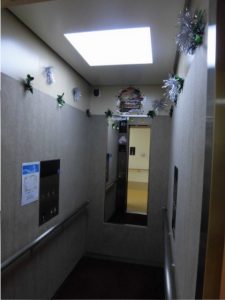 エレベーター内もクリスマスの飾り付けがされています(*^^*)