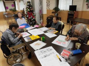 今日は、暖かい食堂で、塗り絵サークルの活動が行われました(o^―^o)ニコ