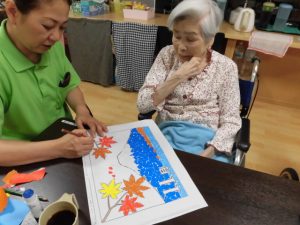 今日は先日行った貼り絵レクリエーションの様子をお届けします★(*’ω’*)