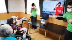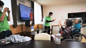 感染対策しつつ、モニターの画面を見ながら体操を30分くらい
