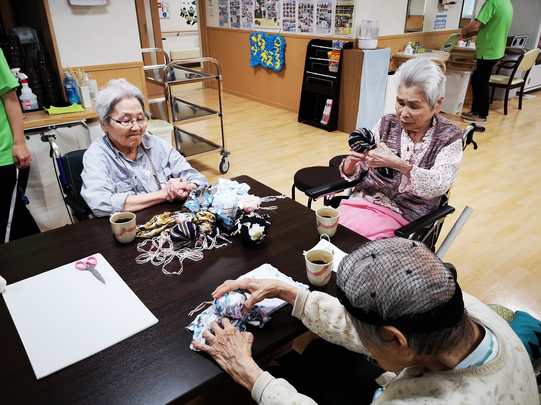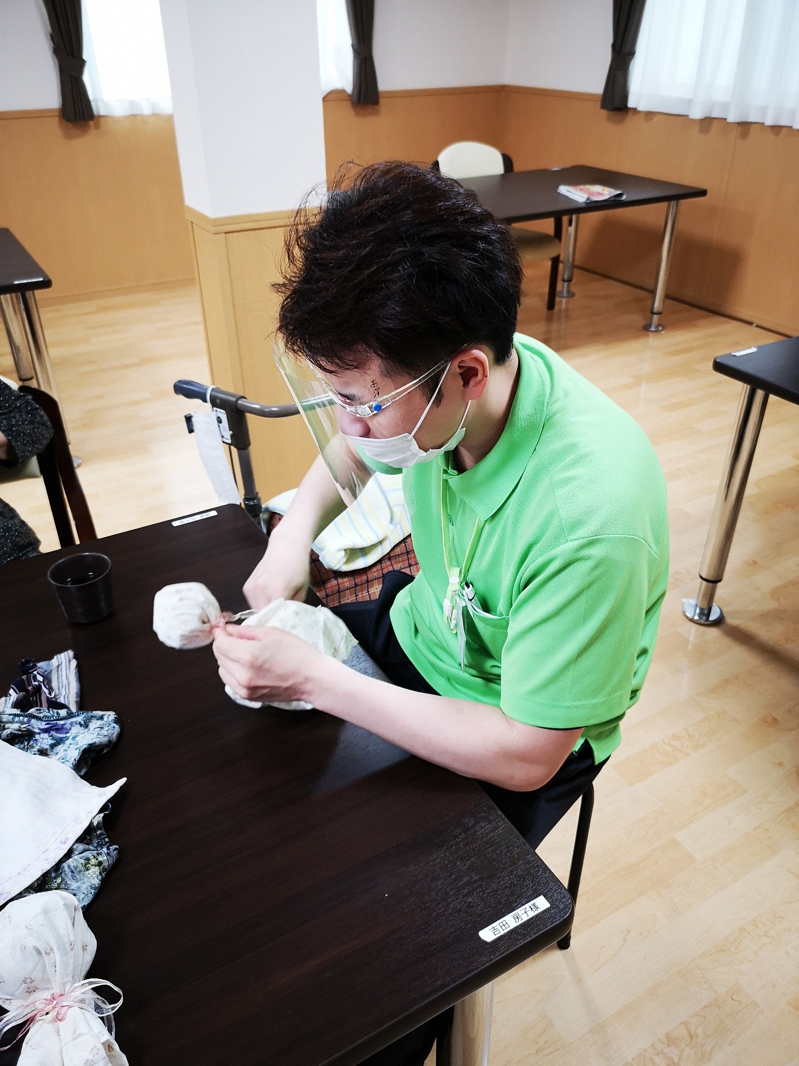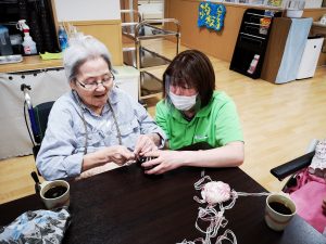 今後、施設の装飾に使う『てるてる坊主』を作りました。