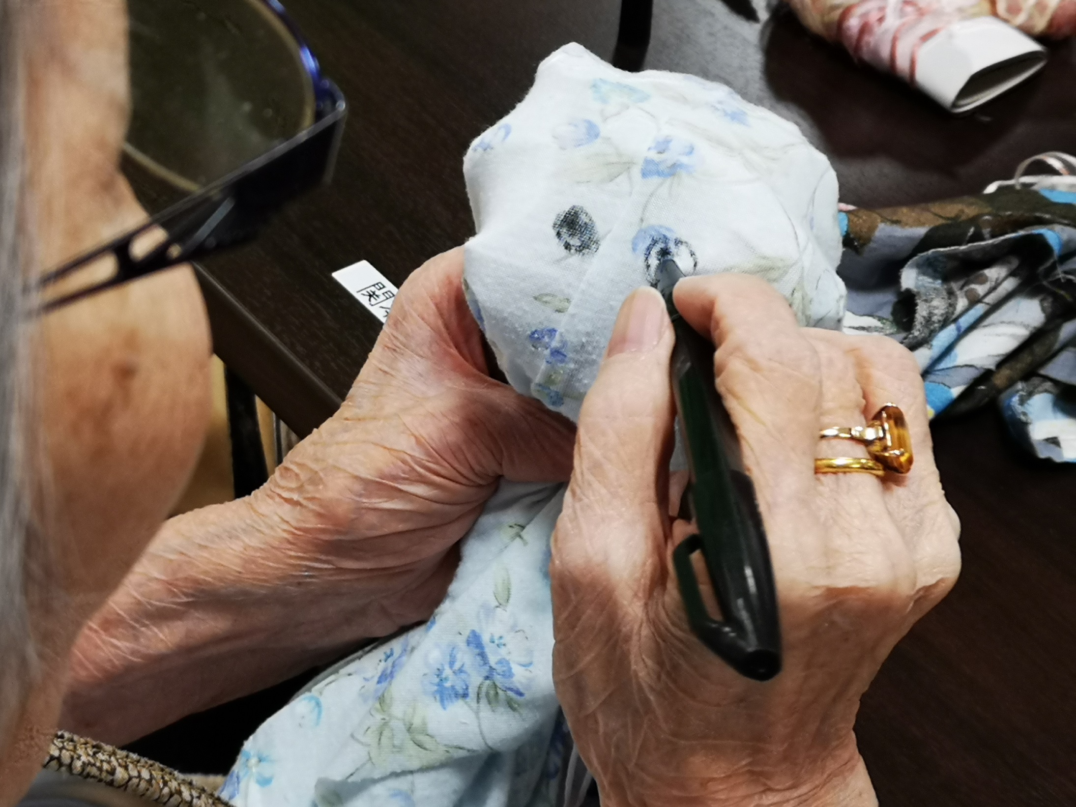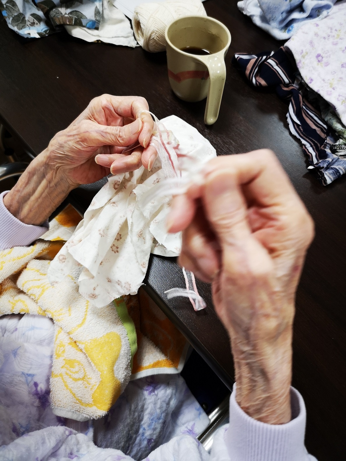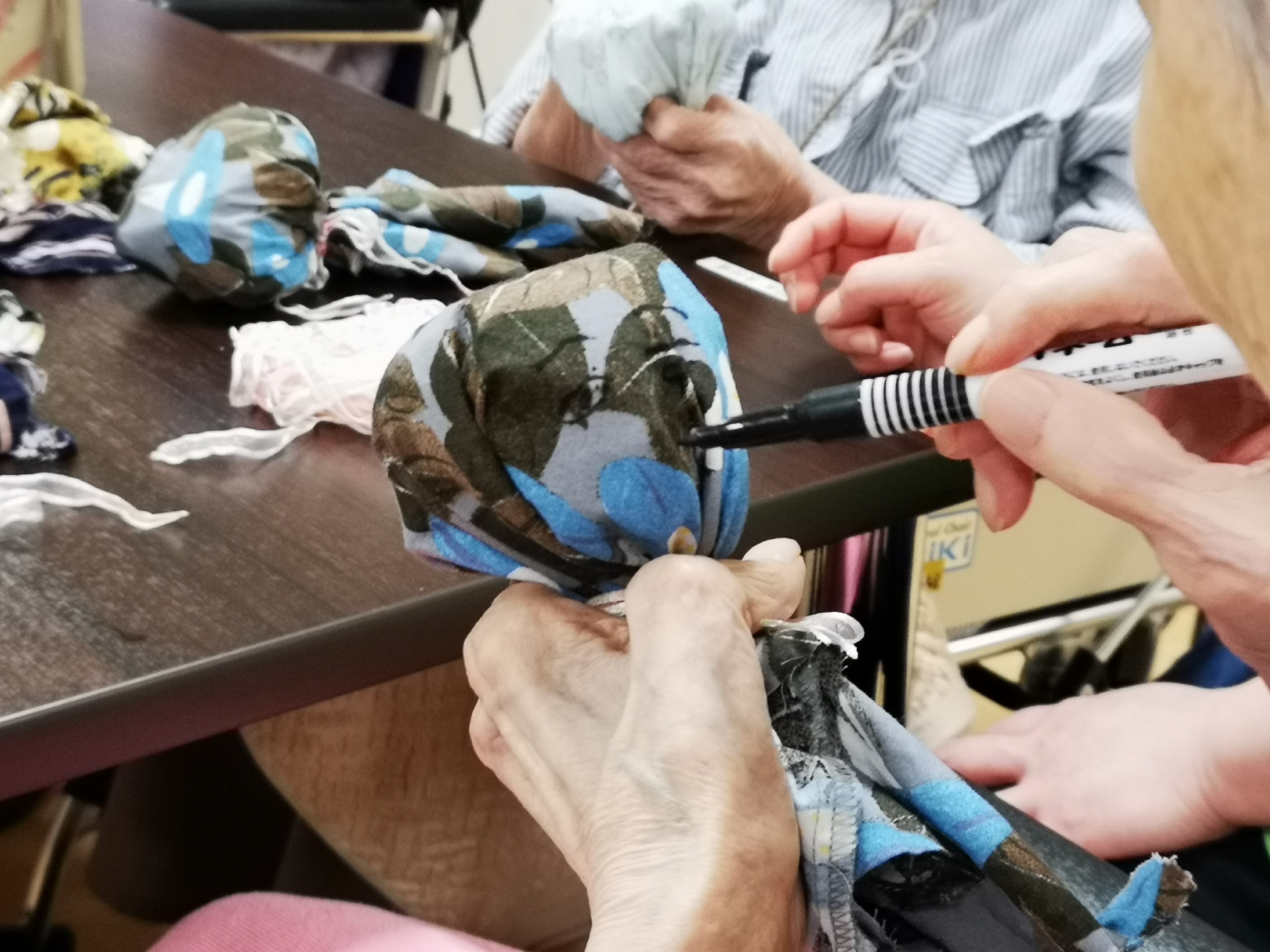 初めは布切れとヒモだけで「何するん?」「ようこんなに生地集めたね」