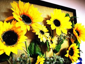 1つは生け花のように立体的なヒマワリ🌻玄関入ってすぐの所でお出迎えしています。