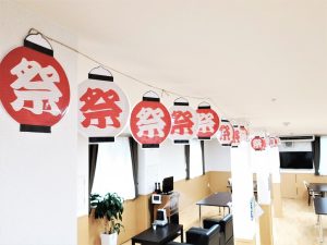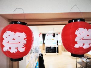 前回のひまわりの館内装飾からの続きで夏祭り用の装飾も始まっています。