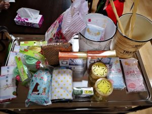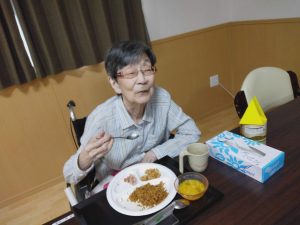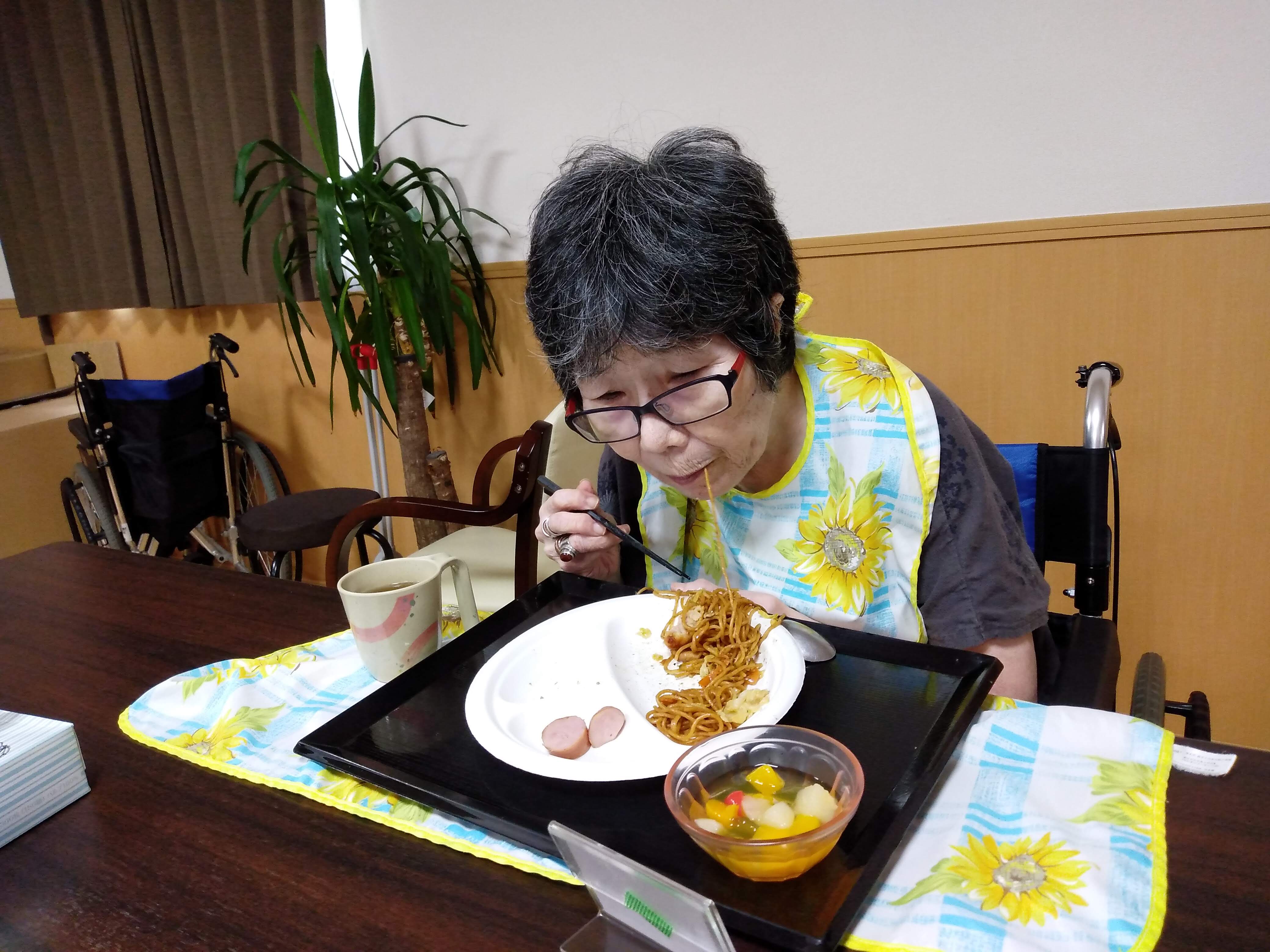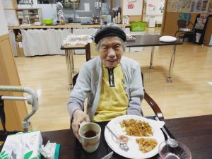 昼食の時間を利用して、イベント食(焼きそば、唐揚げ、フランクフルト、フルーツポンチ)とくじ引き、