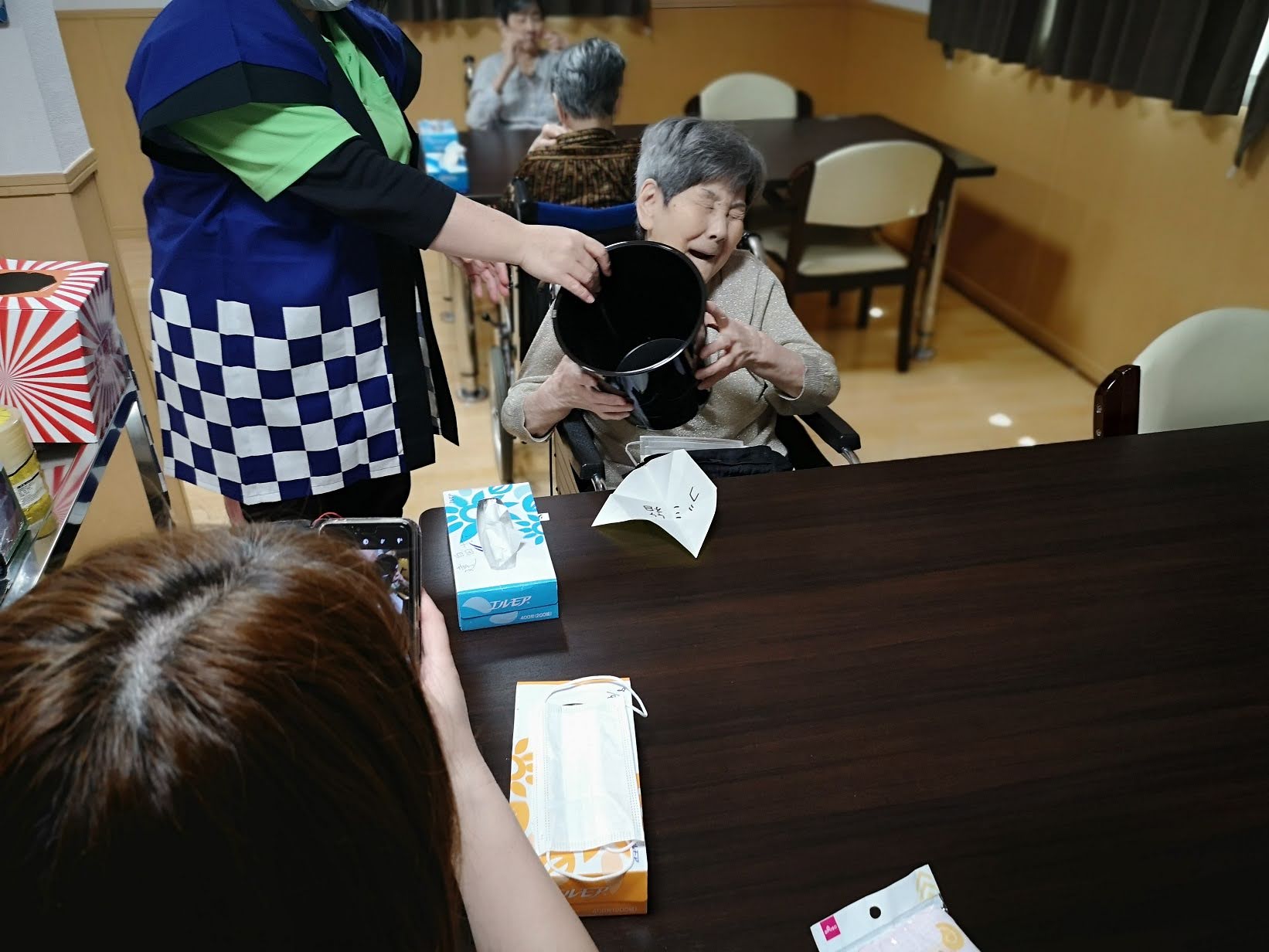 プロジェクター前は、なかなか上手く撮れず、ご利用者様の顔が見えにくくなってますが、
