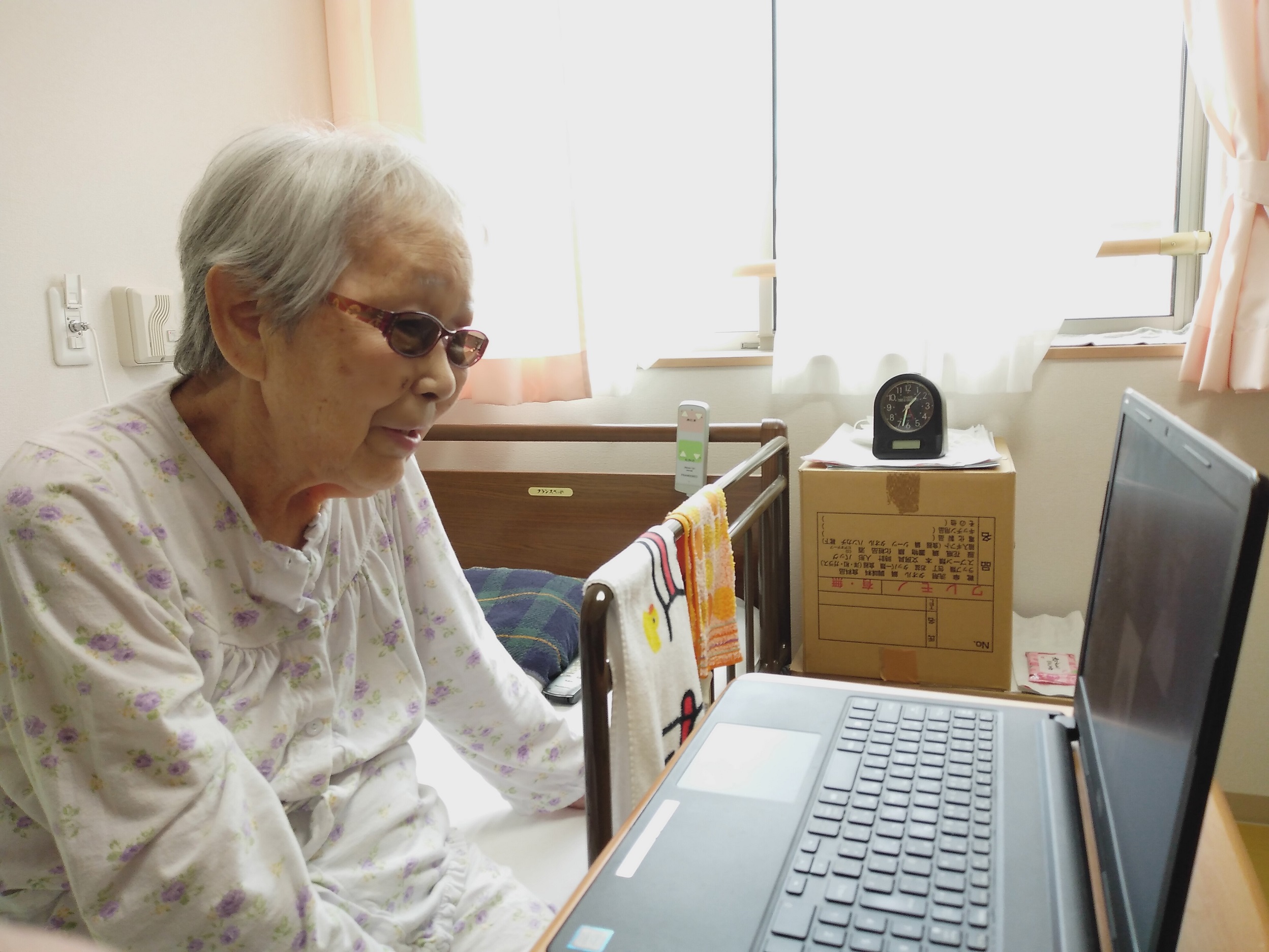 毎月行っている、オンライン面会の様子です。