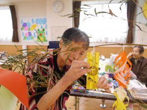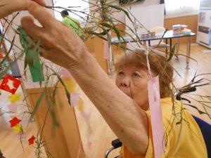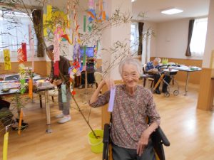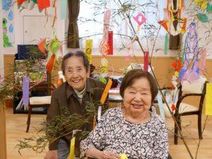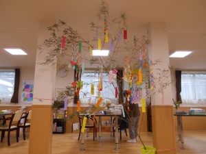 皆さん、和気あいあいと飾りつけをして下さり、とても素敵な七夕飾りの完成です♪