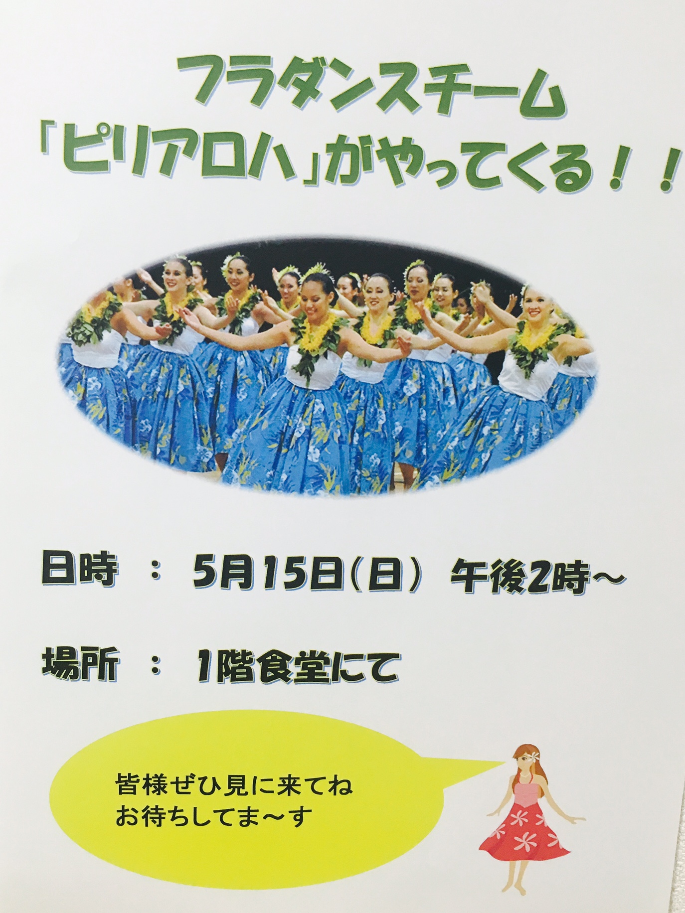 そうです☆フラダンスチームがやってきます🌼