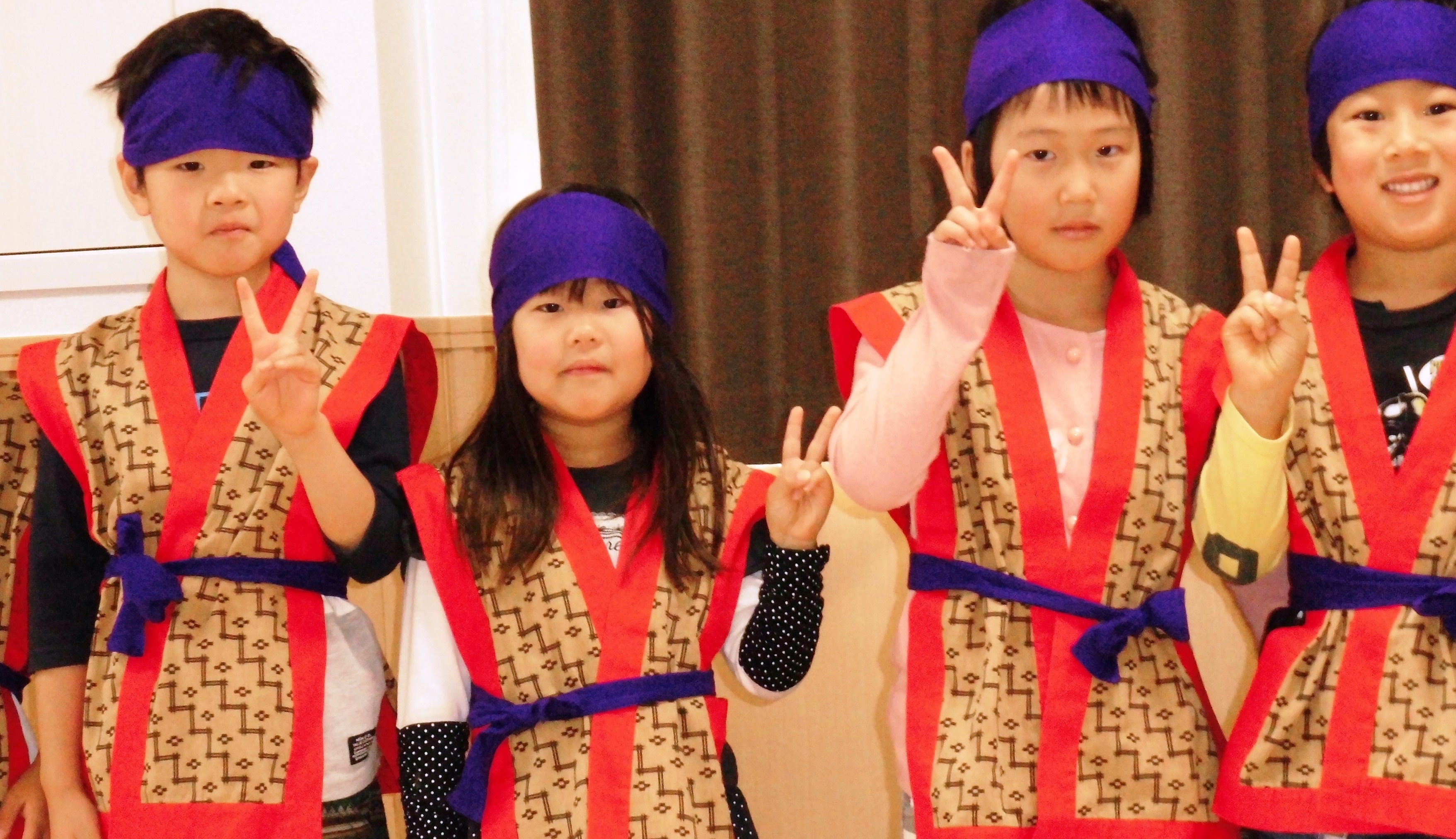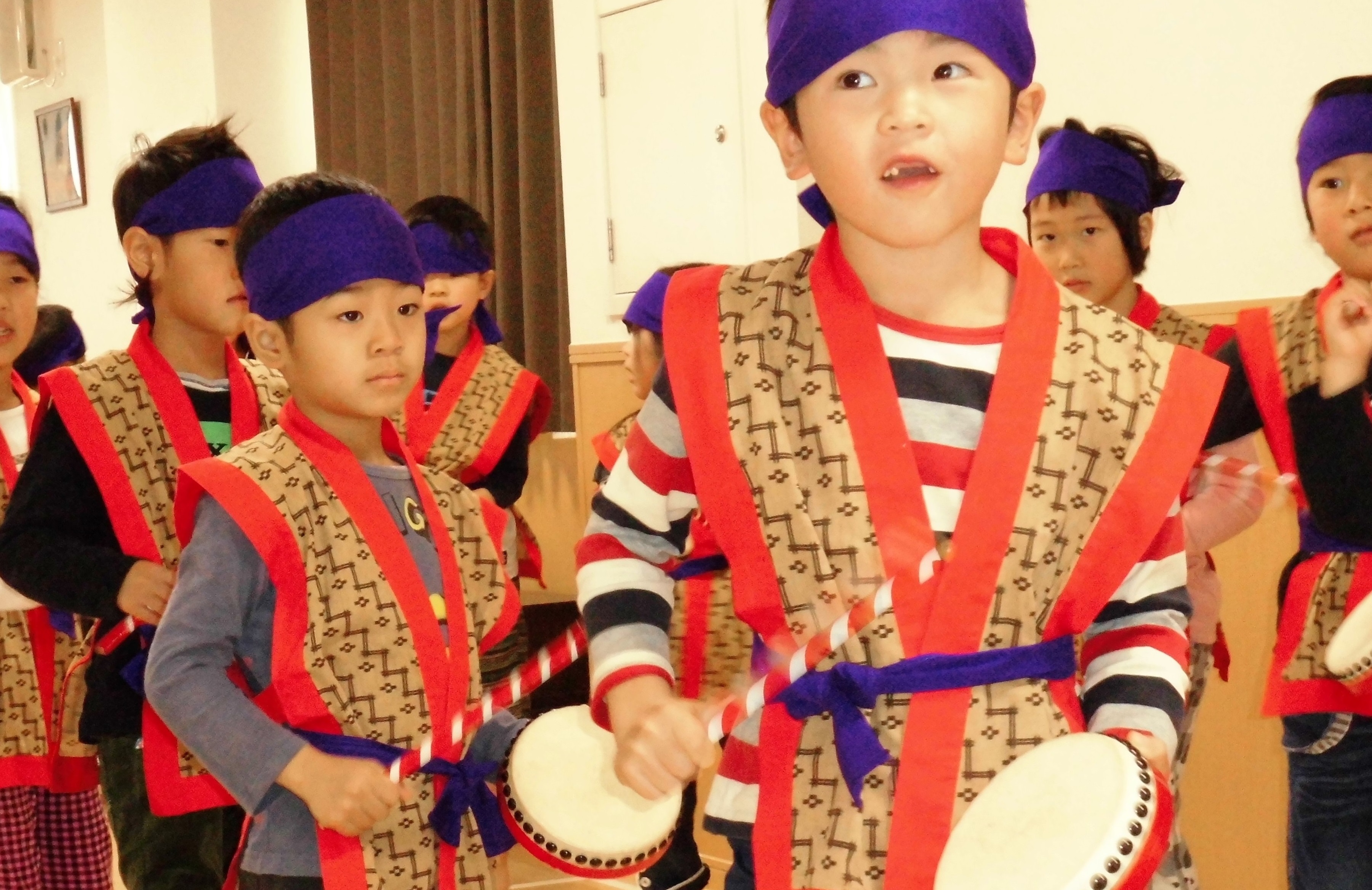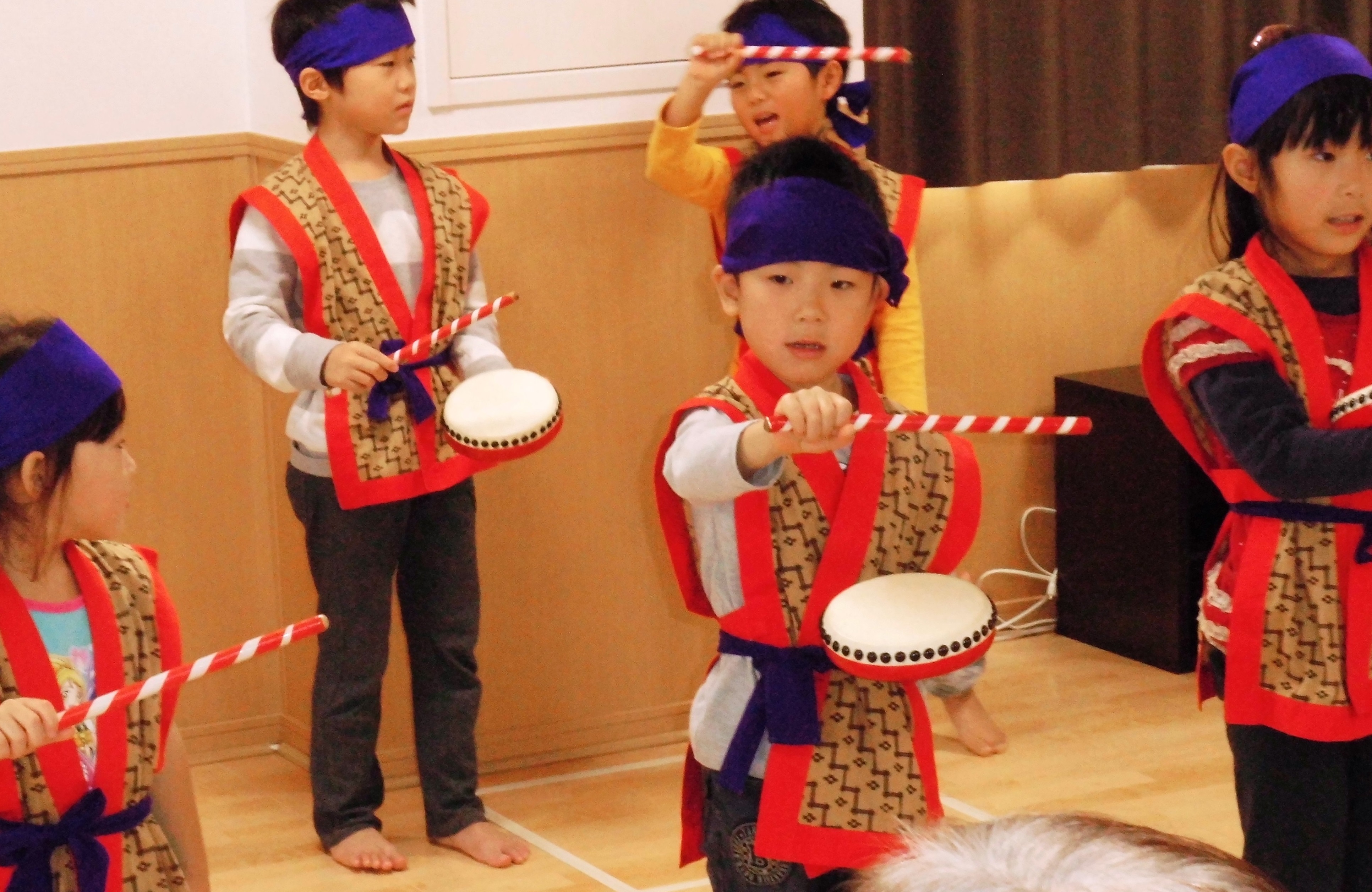 25名の可愛い園児さんが来館され、沖縄の伝統踊りエイサーを披露!!