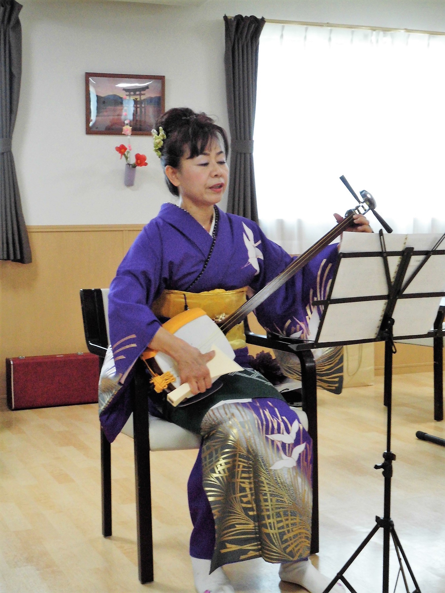 入居者ご家族様による三味線・大正琴・日舞の演奏会がご厚意により開催されました。