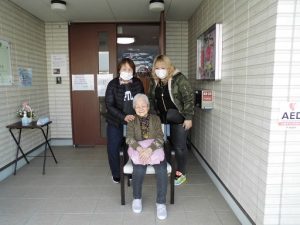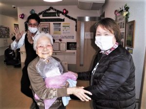 職員と一緒に笑顔を見せて喜ばれていました。