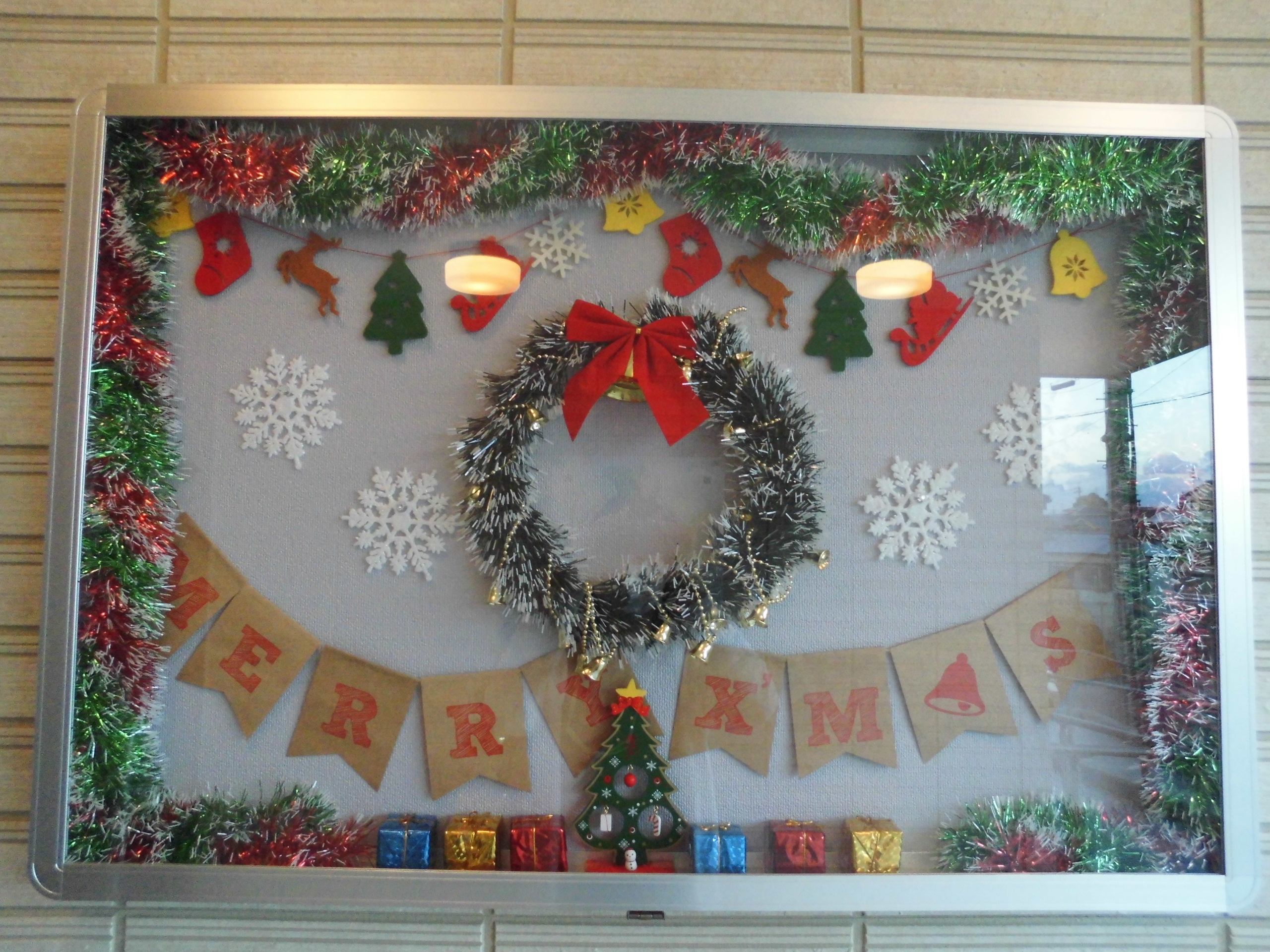 玄関先の掲示板もクリスマス仕様に☆