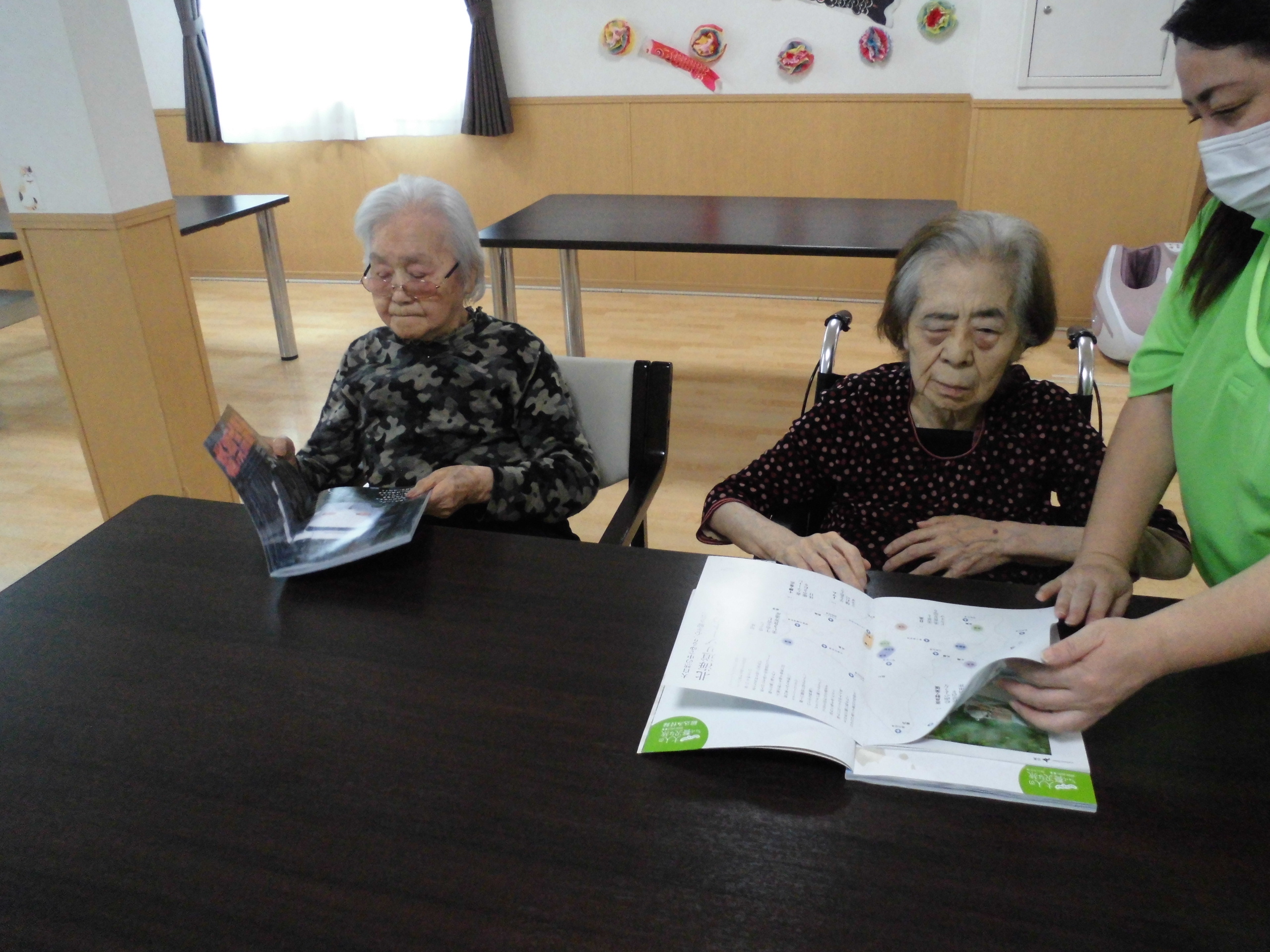 Y職員と一緒に本を見ているI様